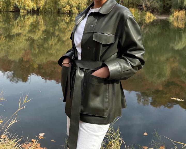 Куртка из кожи наппа Состояние идеальное Цвет хаки Размер S Можно и на М Артикул: 580133