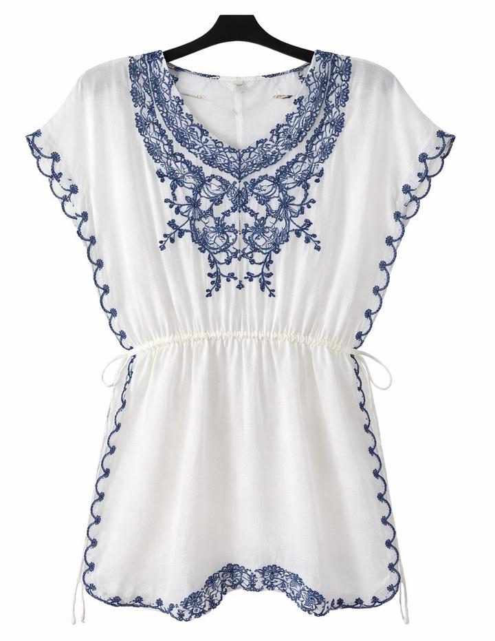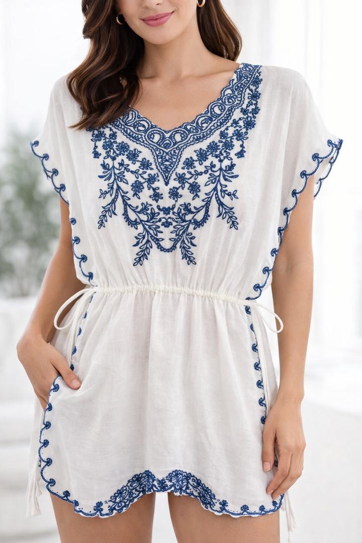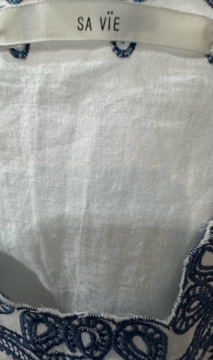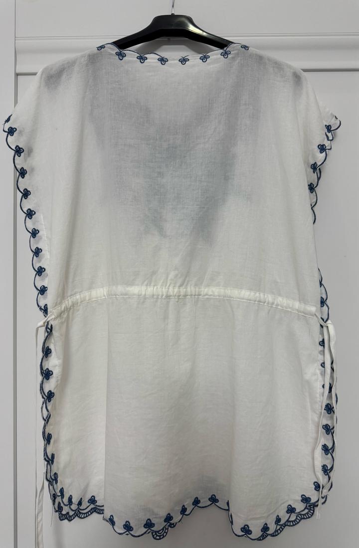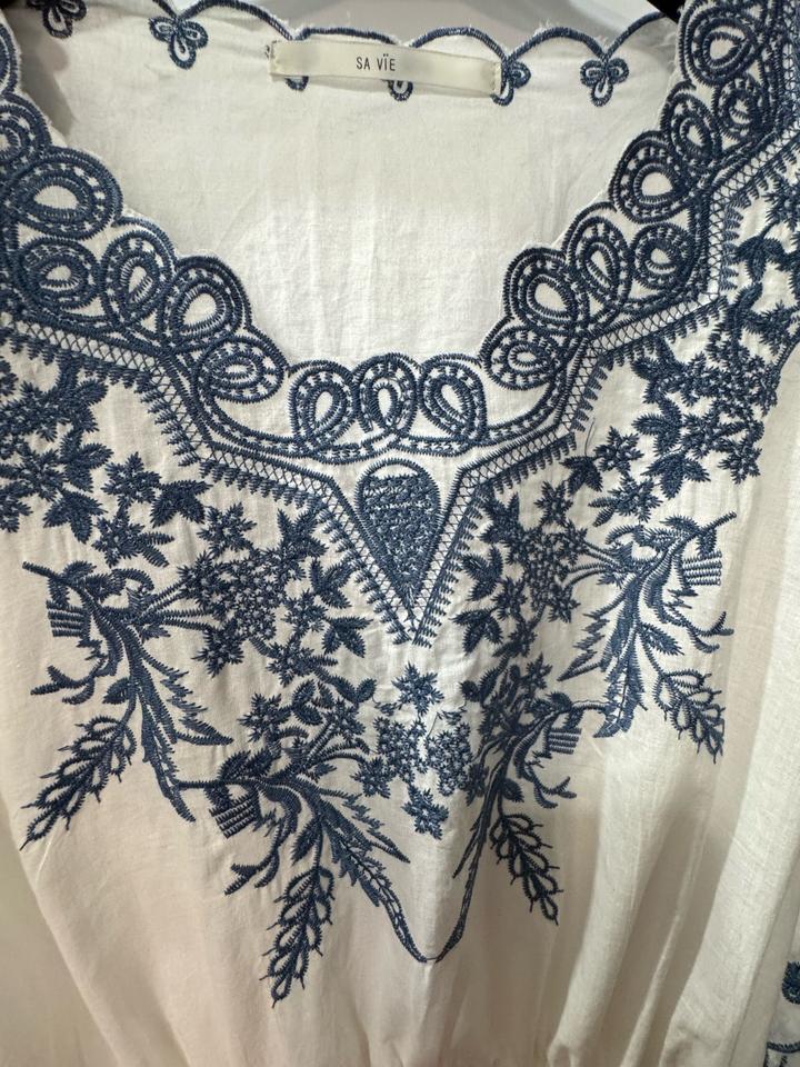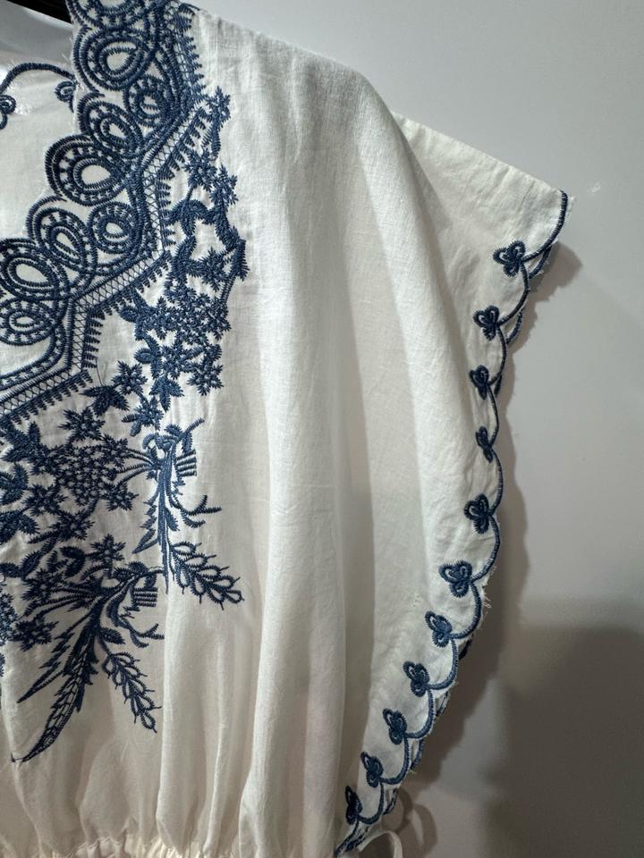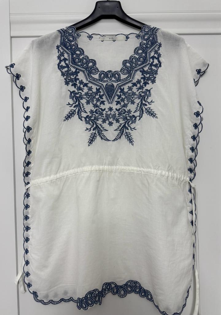 Лёгкая, воздушная туника с красивой вышивкой — идеальный вариант для отпуска и лета Смотрится очень нежно и дорого за счёт ручной стилистики. Особенности: - Бренд SA VÏE - Натуральная ткань — хлопок - Эффектная синяя вышивка в этническом стиле - Свободный крой — комфортно и не жарко - Регулируется по талии (есть завязки) - Красивая отделка по краям Как носить: • как пляжную тунику поверх купальника • как летнюю блузку с шортами или брюками • идеально для отдыха, моря, дачи Артикул: 580211