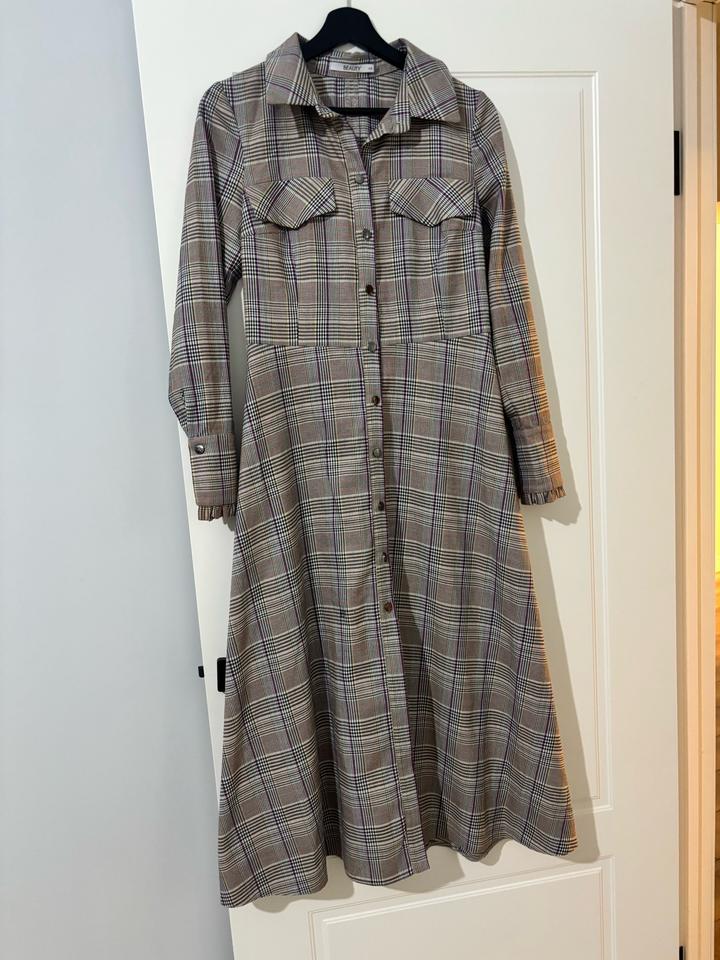 Платье в клетку, отличного качества, длина миди, А силуэт Артикул: 580214