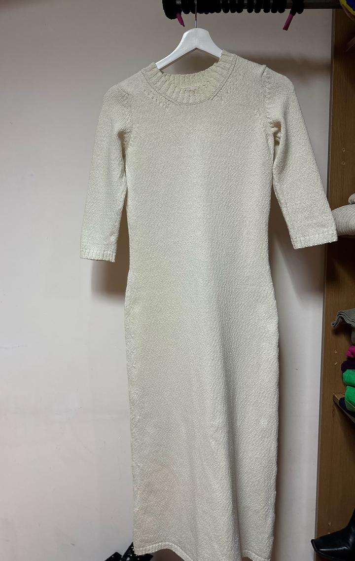 Молочное трикотажное платье в эстетике quiet luxury. Мягкая фактура букле, идеальная посадка по фигуре и длина миди — вытягивает силуэт и делает образ дорогим без усилий. Идеальный баланс между уютом и женственностью. Отлично смотрится как с сапогами, так и с минималистичными лодочками. База, которая работает всегда: на каждый день, на встречи и даже на вечер с правильными аксессуарами. Артикул: 580260