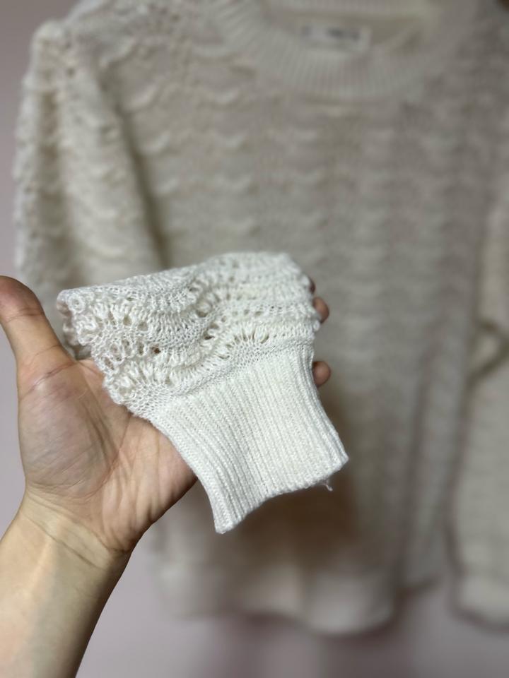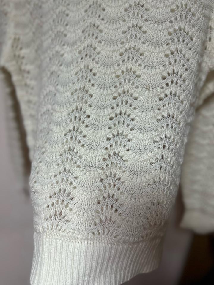Молочный ажурный джемпер из шерстяного бленда — лёгкий, воздушный и очень тактильный. Нежная вязка с узором создаёт эффект «дорогой простоты» и добавляет образу мягкости. Идеален для слоёв: поверх топа, рубашки или на голое тело для более чувственного образа. Та самыя уютная вещь , которая выглядит стильно без усилий. Артикул: 580274
