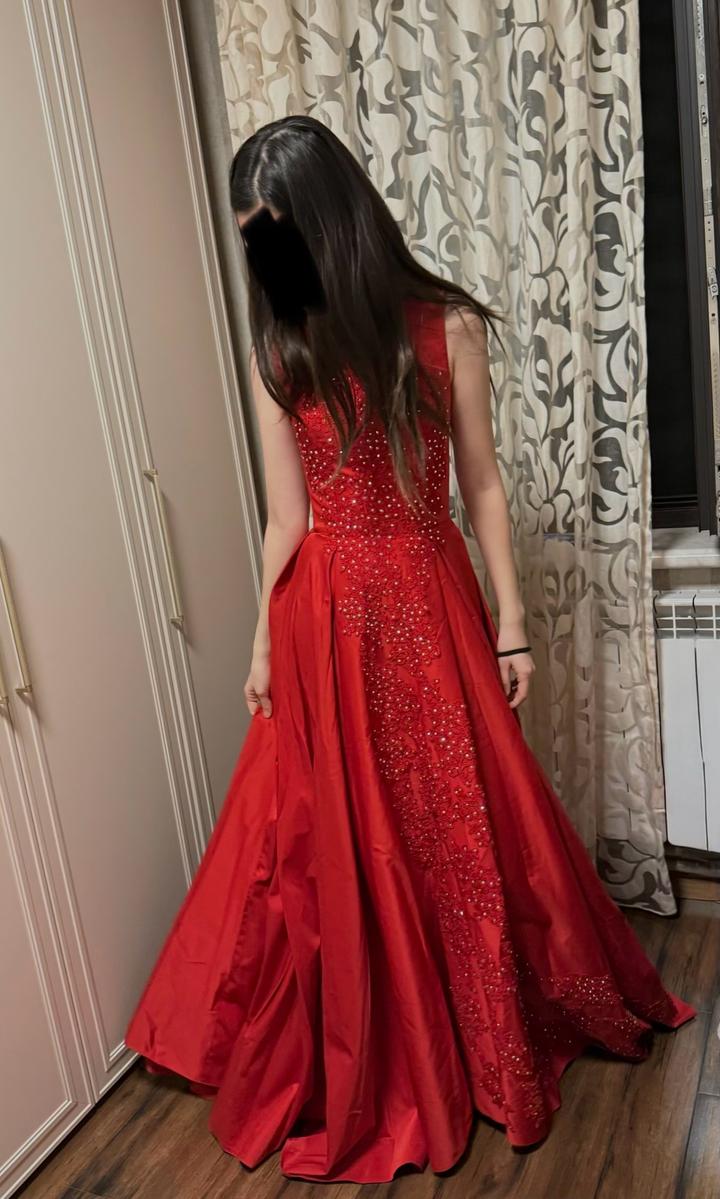 красное платье, с открытой спиной, в идеальном состоянии, на замке, с камнями swarovski ткань - габардин параметры: талия 63, грудь 75 рост модели 178 Артикул: 580282