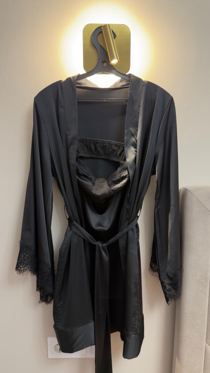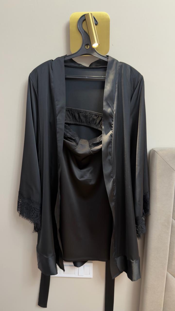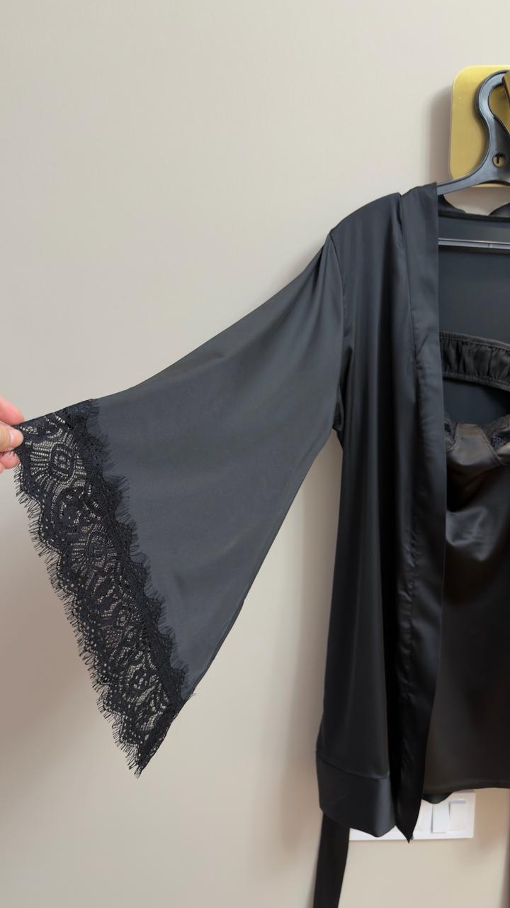 Черный халат с кружевами, новый 🆕 Без бирок, постирала после доставки. Артикул: 580474
