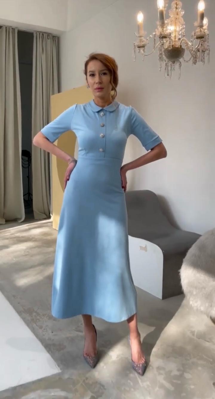 Голубое платье казахстанского бренда Alfeli brand из плотного трикотажа - джерси, размера М. Надевала 1 раз на видеосъемку. Красиво подчеркивает и моделирует фигуру. 😻 Артикул: 580488