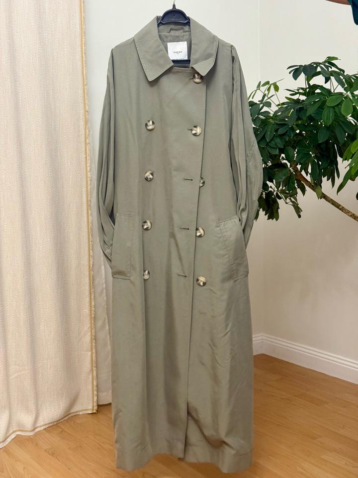 Длинный тренч Mango. Размер С, на фото модель размера М и ростом 170, ( оказывается выпала одна пуговка внутренняя,можно на любую другую заменить ) Артикул: 580494