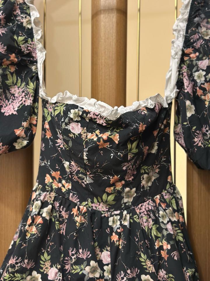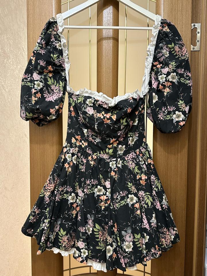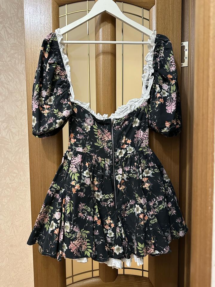 🛍️Цветочное платье-шорты Очень высокого качества, покупала дорого На миниатюрную девушку XS/S Шикарный плотный хлопок Рукава-фонарики съемные, можно носить спущенными Отличная фурнитура Было в носке один раз 💥Врезается в память каждого 🔥Стилизуйте его берцами или казаками Артикул: 580540