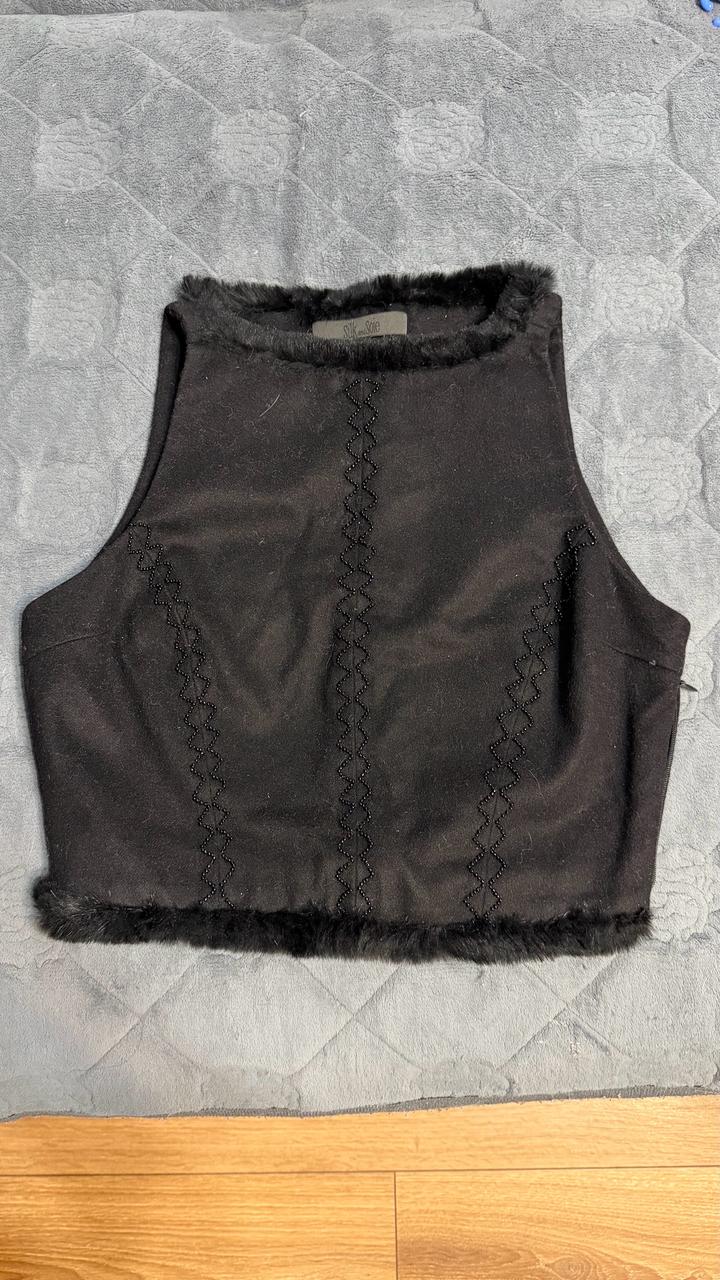 Топ шерстянной, укороченный, украшенный стразами и по краям мехом) интересная модель, размер XS-S Артикул: 580569