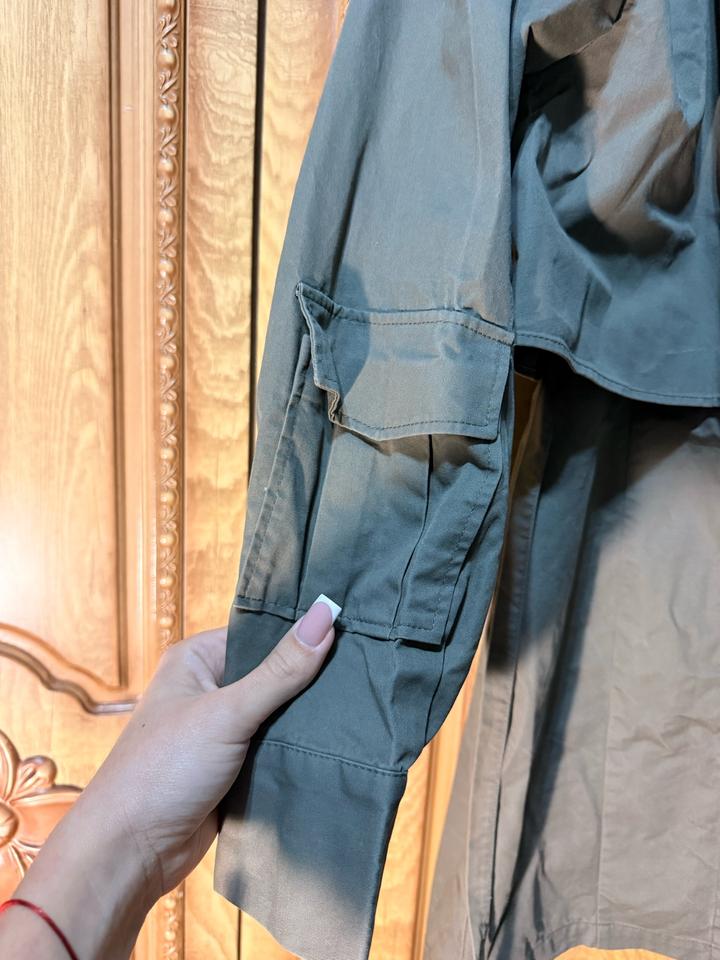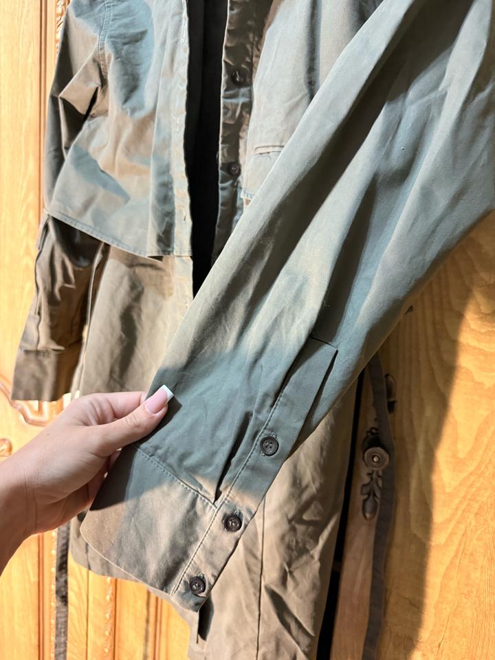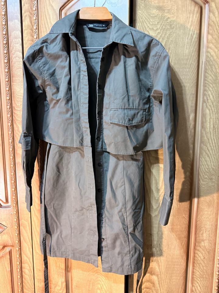 Стильное платье от Zara в трендовом цвете хаки. Очень круто садится по фигуре и подчёркивает силуэт. Интересная особенность — вшитый верх (эффект многослойности), это не отдельная вещь, а единый дизайн, за счёт чего выглядит необычно и дорого. Есть пояс, можно регулировать посадку и акцентировать талию. Подойдёт как на повседневные образы, так и на выход. Размер XS. Состояние хорошее. Артикул: 580606