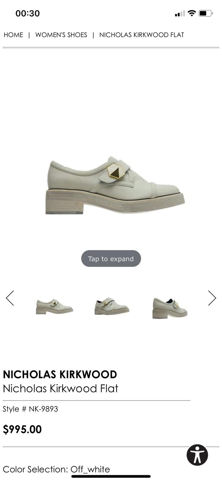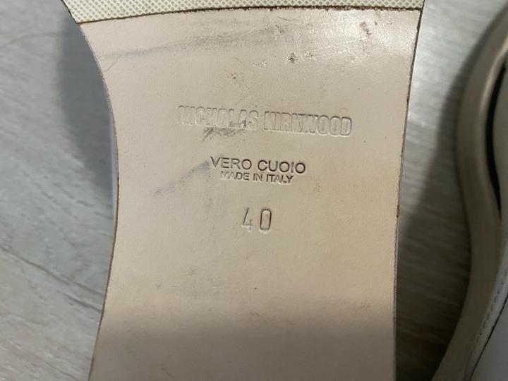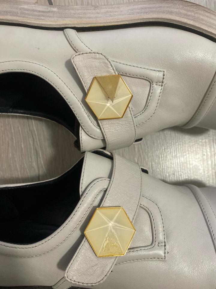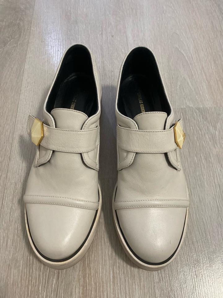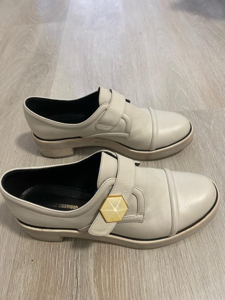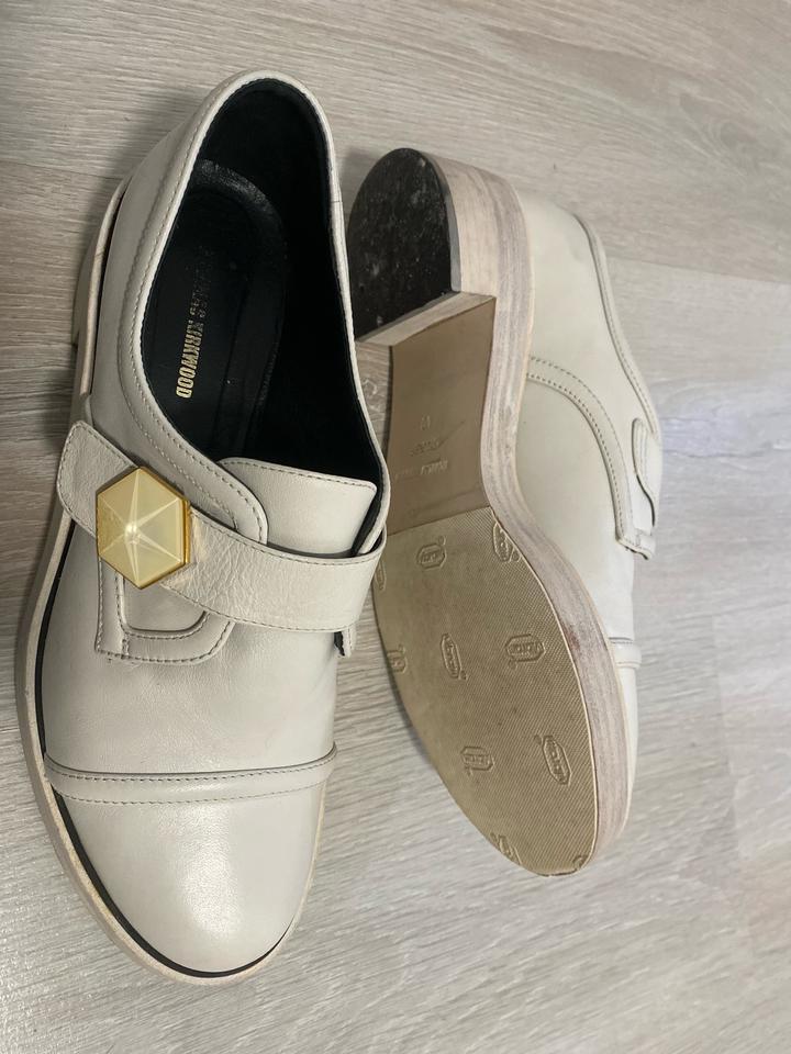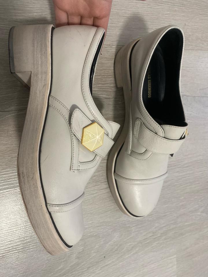Туфли на плоской подошве, из белой натуральной кожи, оригинал Nicholas Kirkwood. Эта фирма уже не выпускает обувь. Стоит дорогая профилактика vibram. Состояние отличное. Подошва из 4х слоев кожи. Застежка на липучке. Можете при увилечении увидеть. В общем обувь просто нереально классная, неубиваемая. Единственное, маленькая железка треугольник на застежке одной отсутствует, на фотке есть. Стоило очень дорого Артикул: 580632