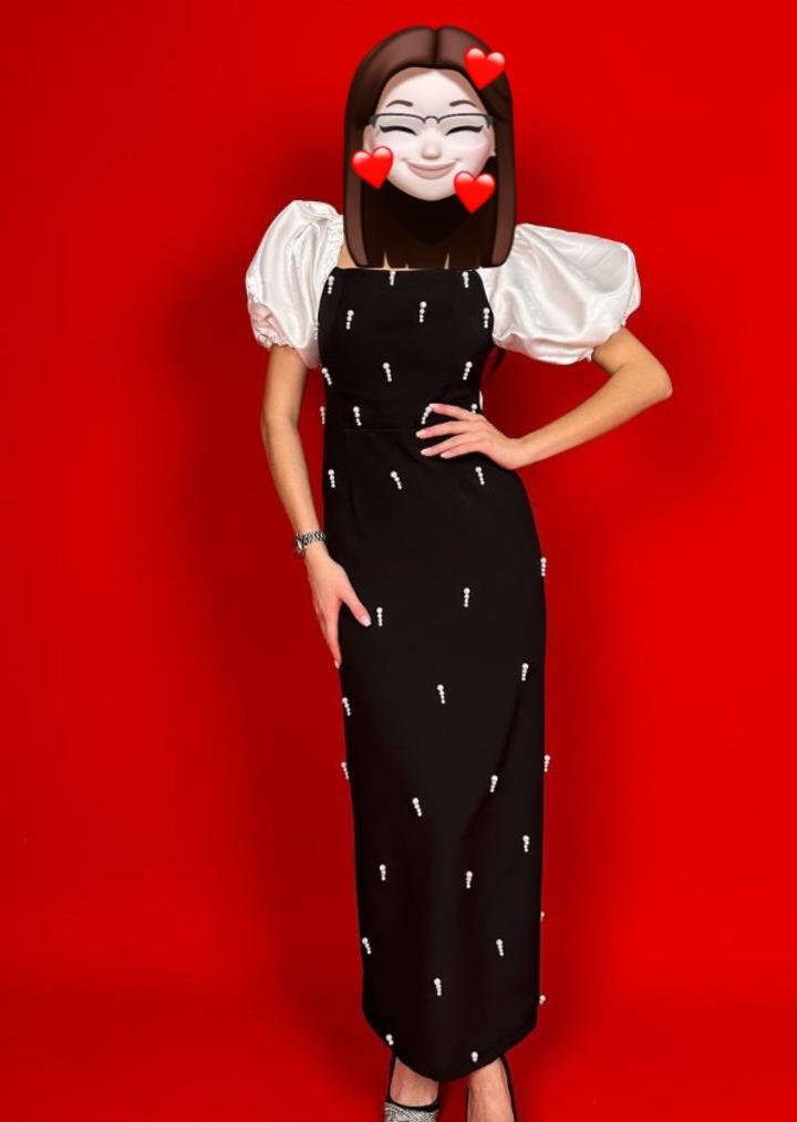 Чёрное платье с белыми рукавами, без каких-либо дефектов. Заказывала, но ни разу не носила — не подошёл размер. Абсолютно новое. Размер 42. Артикул: 580650