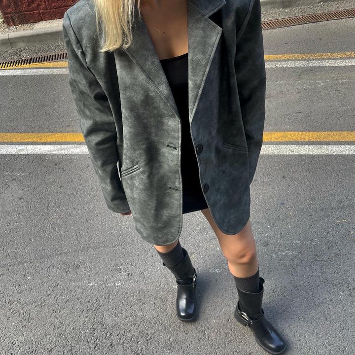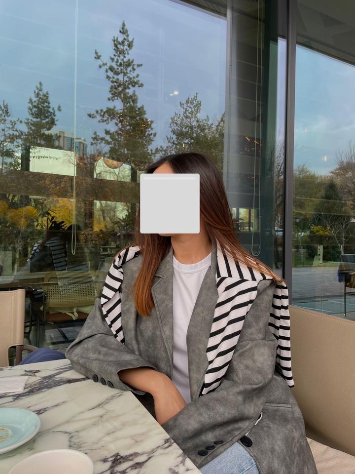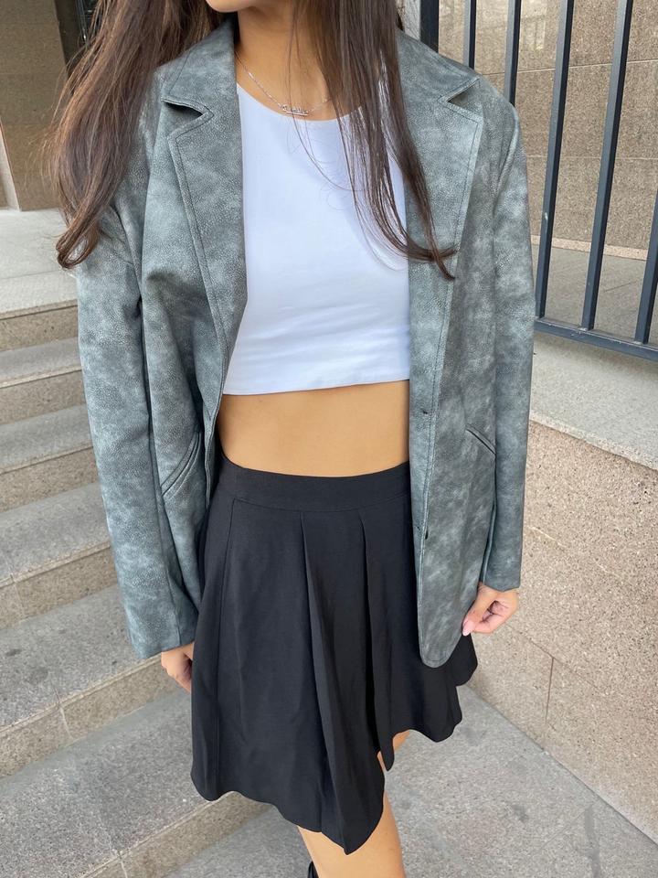 Кожаный пиджак мраморного оттенка — очень стильный и эффектный. Материал высокого качества, выглядит дорого и современно. Состояние отличное — надевался 1–2 раза. Размер универсальный (S–M–L), стандартная посадка. Артикул: 580675