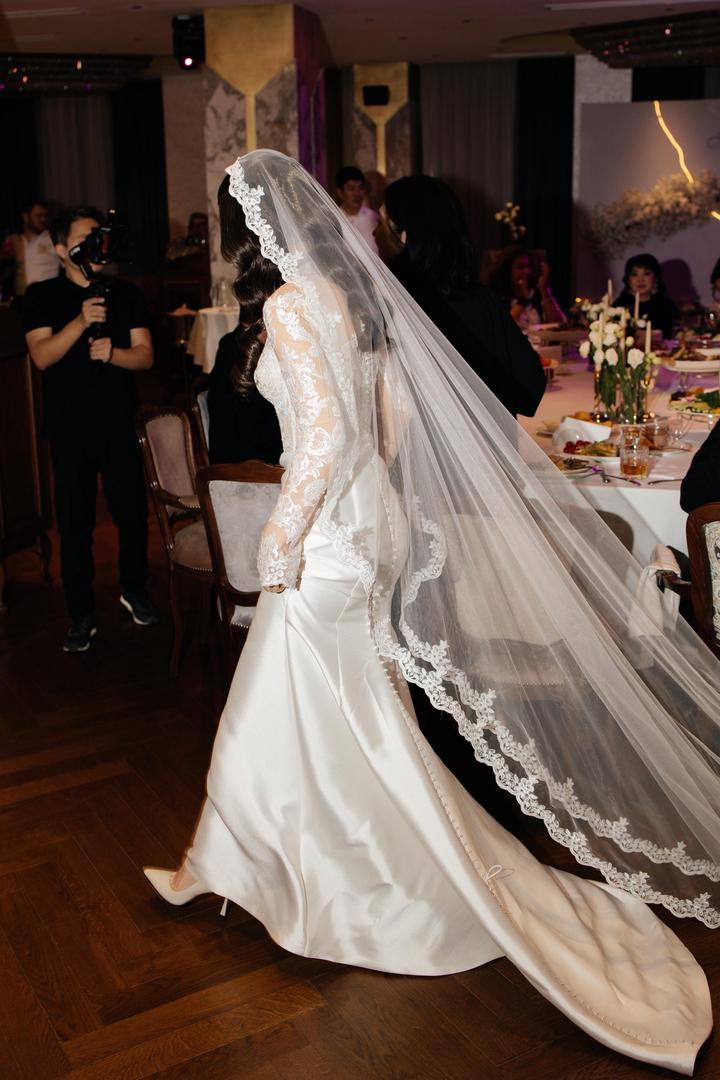 Свадебное платье с фатой. Приобретали в сентябре 2025 года. Без дефектов, после химчистки. Надевали один раз. Артикул: 580686