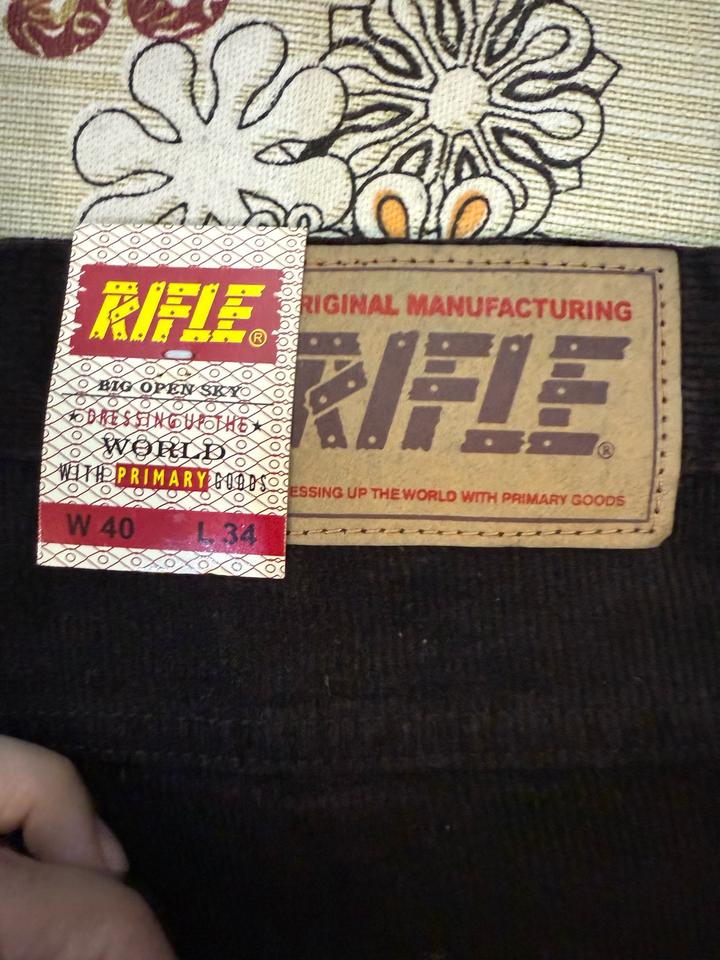 Плотный вельвет Оригинал Мужской размер: 56 Обхват талии: около 101–104 см. Рост: маркировка 34 (длина внутреннего шва ~86 см) подходит на рост 182–190 см. Если рассматривать маркировку 40/34 на вельвете Rifle как женский размер, то ситуация меняется в зависимости от того, в какой системе указаны числа: 1. Если это джинсовый размер (W40) Это размер из категории Plus Size (большие размеры). Казахстанский/Российский размер: 56–58. Обхват талии: ~100–103 см. Обхват бедер: ~114–118 см. Артикул: 580779