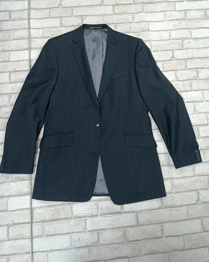 серый мужской костюм двойка, классика. В идеальном состоянии. Состав - смесь с шерстью. Отсутствует бирка с составом и с размером. Пожалуйста, смотрите замеры на фото( в сантиметрах). Размер примерно 46-48, рост 164-168 см. Артикул: 580785
