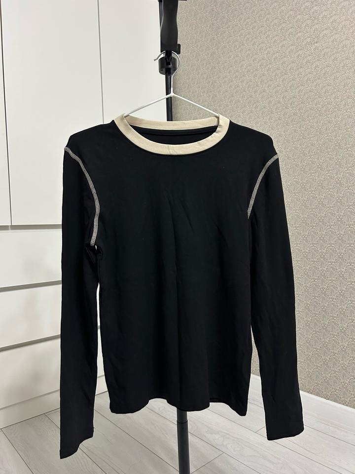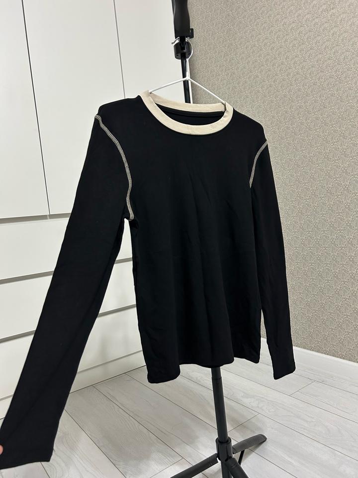 Черный облегающий лонгслив с бежевыми вставками, новый, размер стандарт, ткань тянется до 48 размера Артикул: 580791