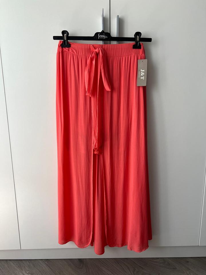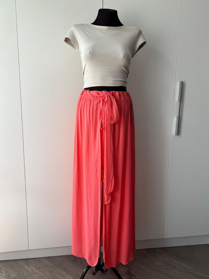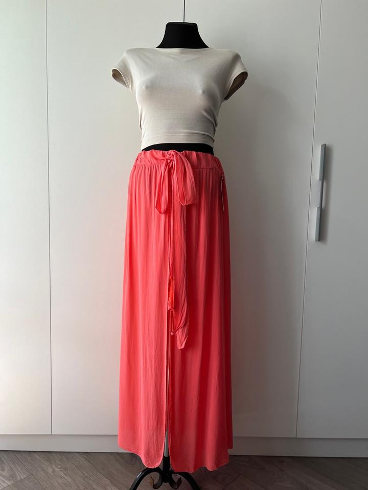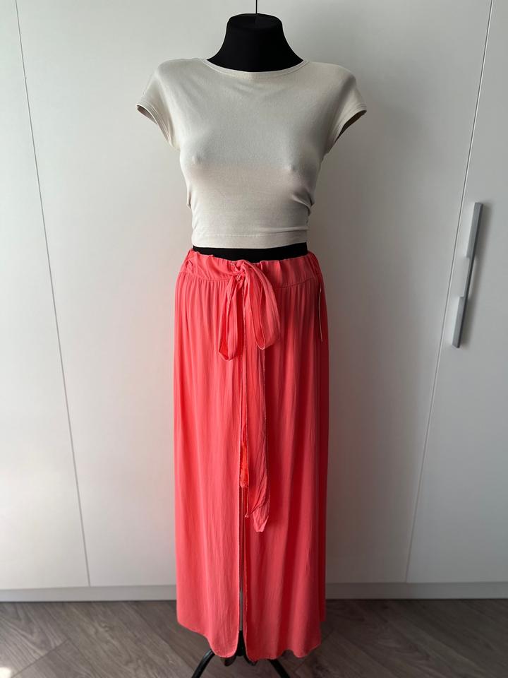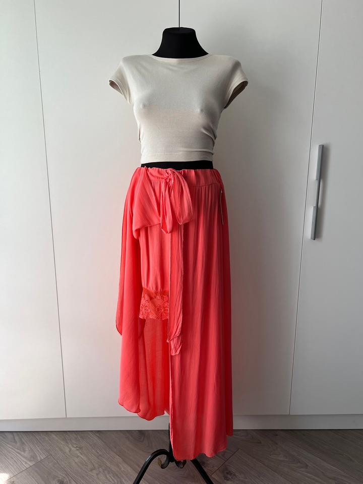 Новая итальянская юбка с этикеткой. Цвет яркий лососевый, материал вискоза. Внутри мини, сверху макси, разрез по середине. Размер 44/46 Артикул: 580847