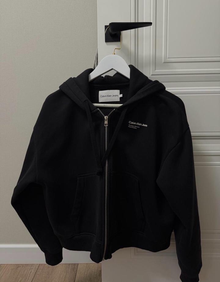 Зипка Calvin Klein: Твой уютный Oversize V Базовый черный свитшот на молнии, который не хочется снимать. Идеально на каждый день! • Бренд: Calvin Klein. • Размер: L (свободная посадка). • Комфорт: Плотный трикотаж с мягким начесом (флис) - согреет в любую погоду. • Стиль: Лаконичный логотип и глубокий черный цвет. Универсальная вещь под джинсы или джоггеры. состояние - отличное. Артикул: 580850