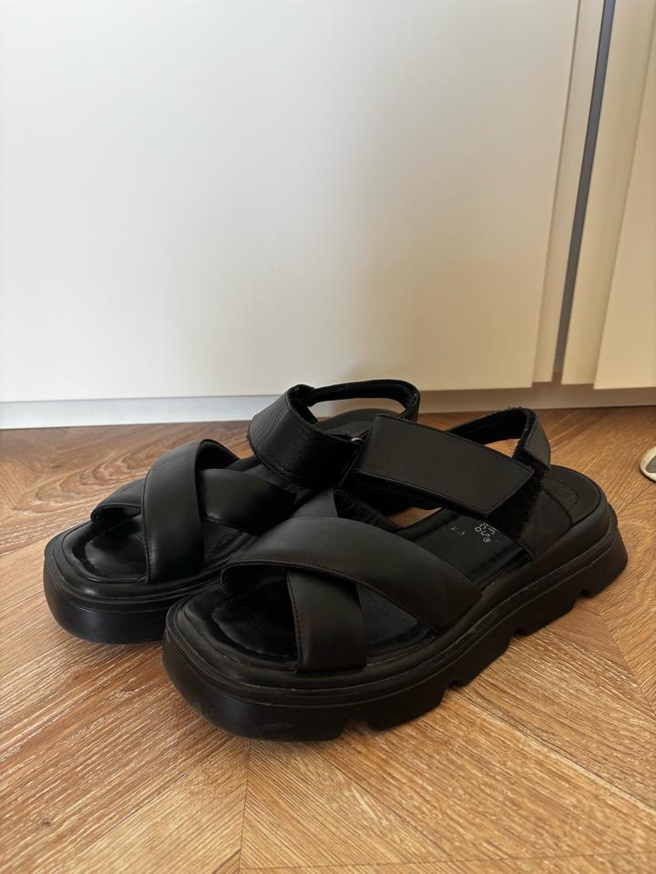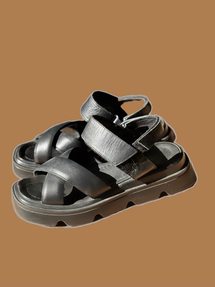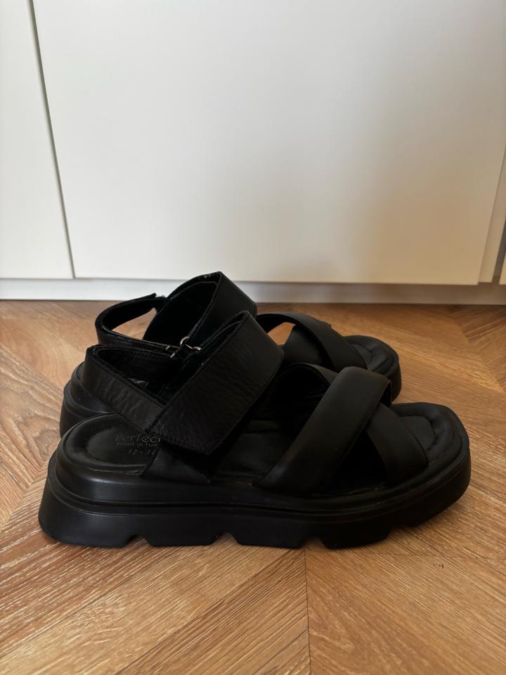 Черные босоножки на высокой подошве. Хорошо фиксируют ногу. Не тяжелые. Артикул: 580983