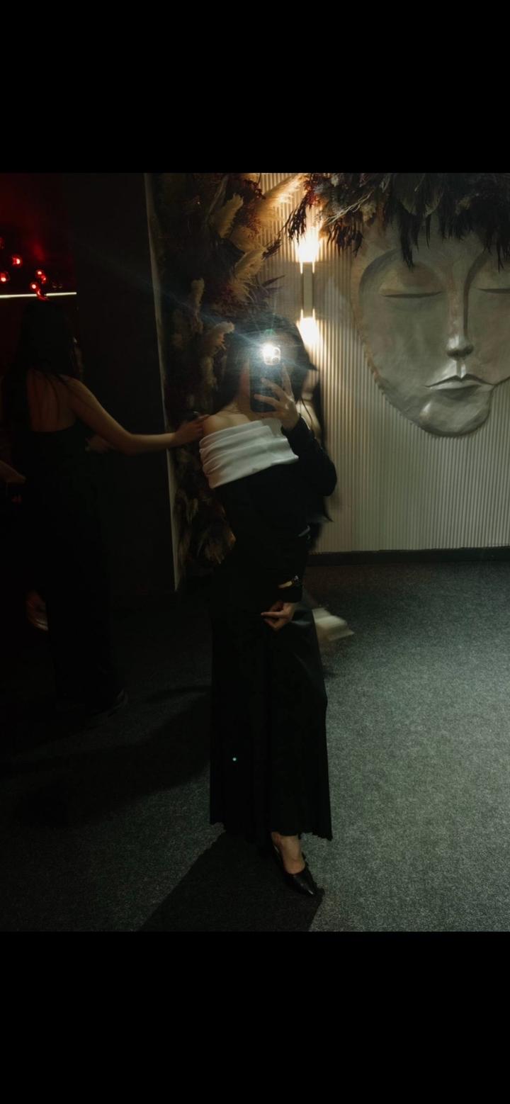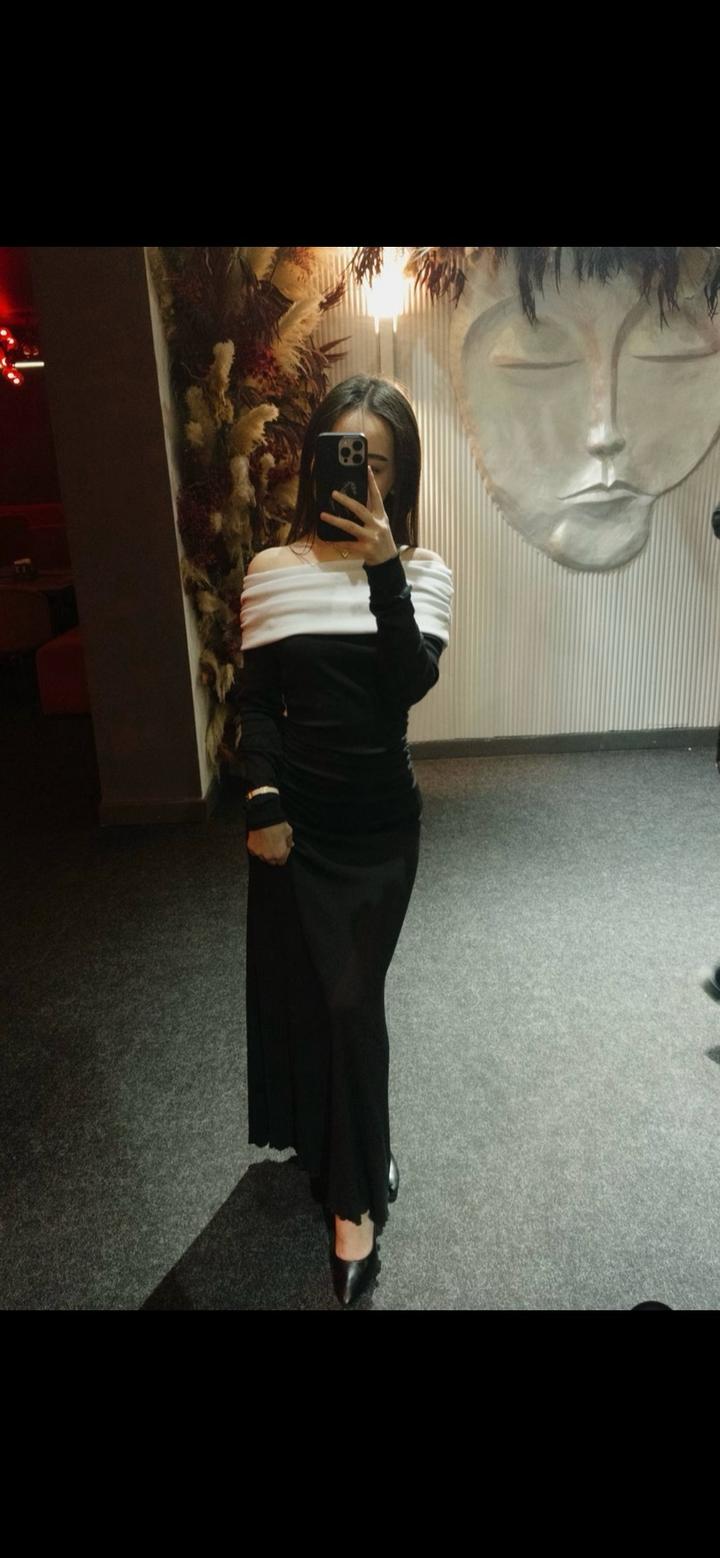 Платье чёрный с контрастным белым верхомS/M