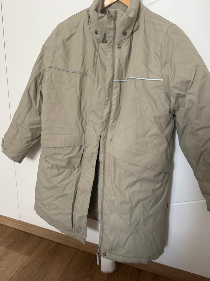 Куртка для девочки зимняя, размер 140-146см, с капюшоном и вшитыми манжетами, есть резинка внутри, чтобы затянуть на талии. Артикул: 581087