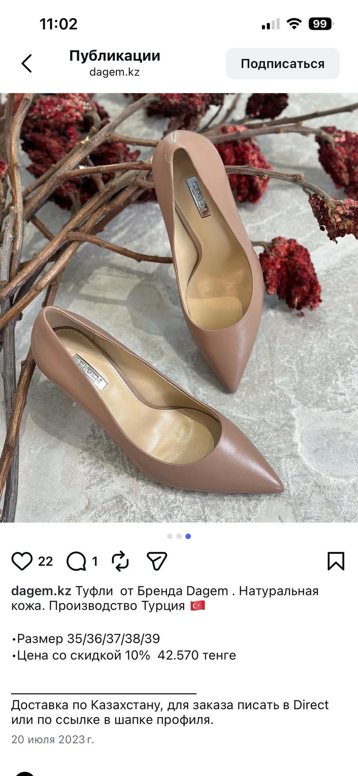Туфли Турция, кожа, цвет бежевый, размер 35, высота каблука 9,5. Состояние как новые, надевала один раз. Артикул: 581185