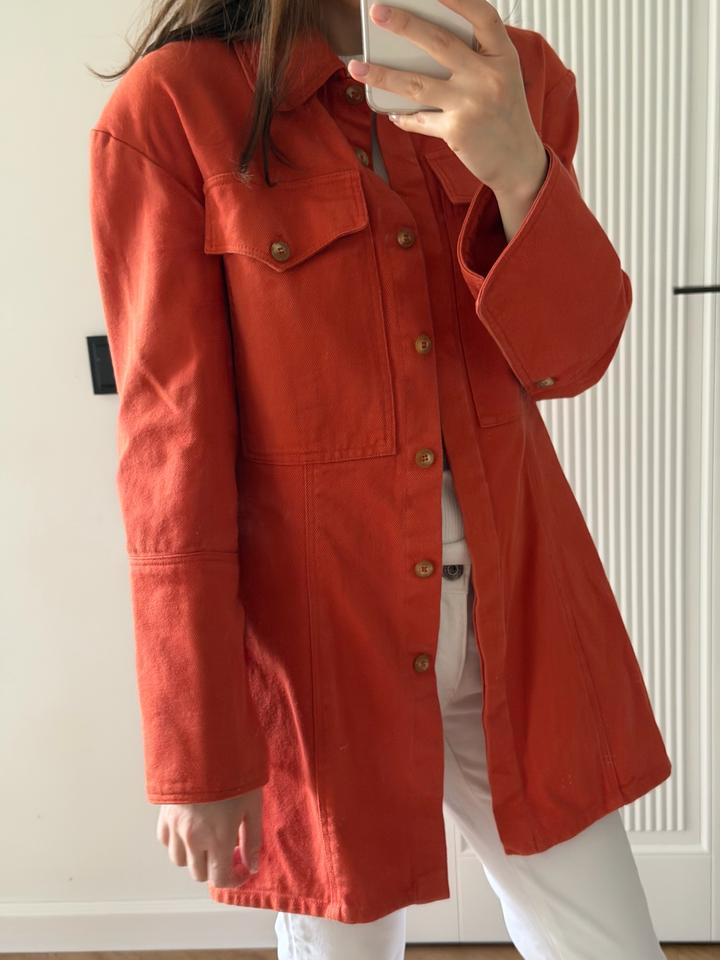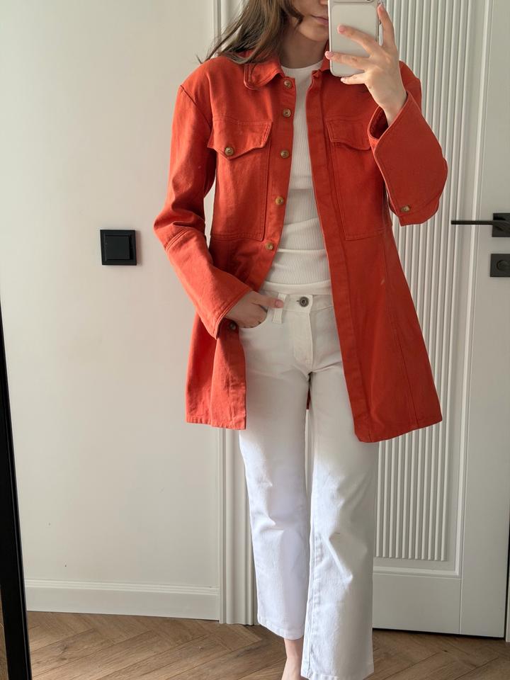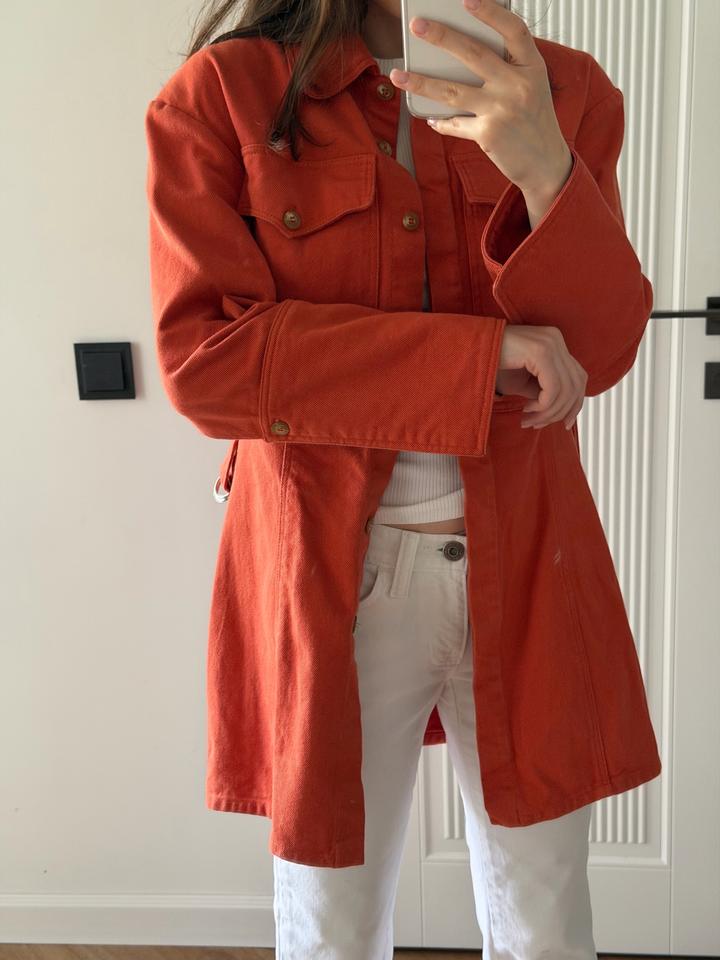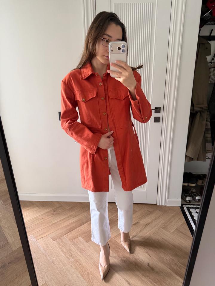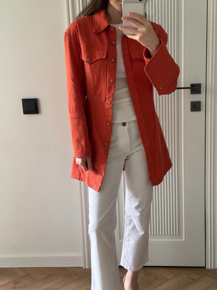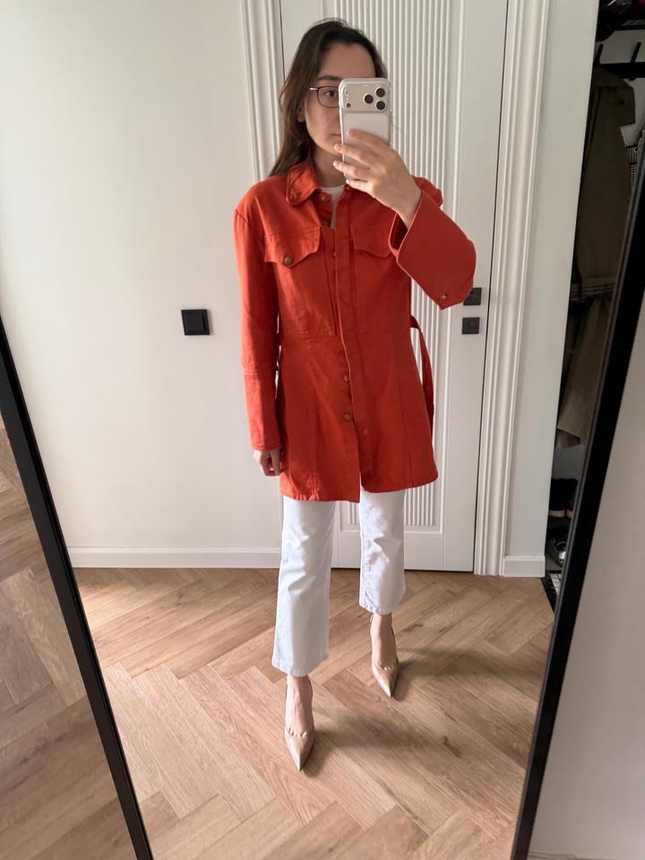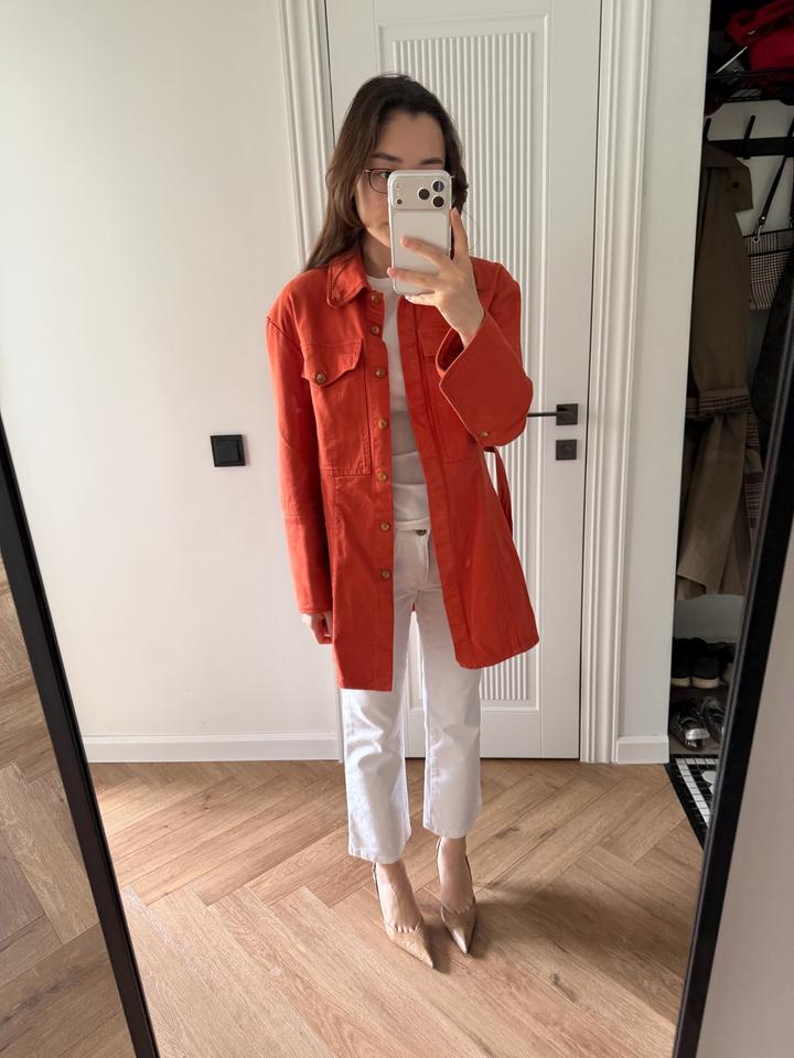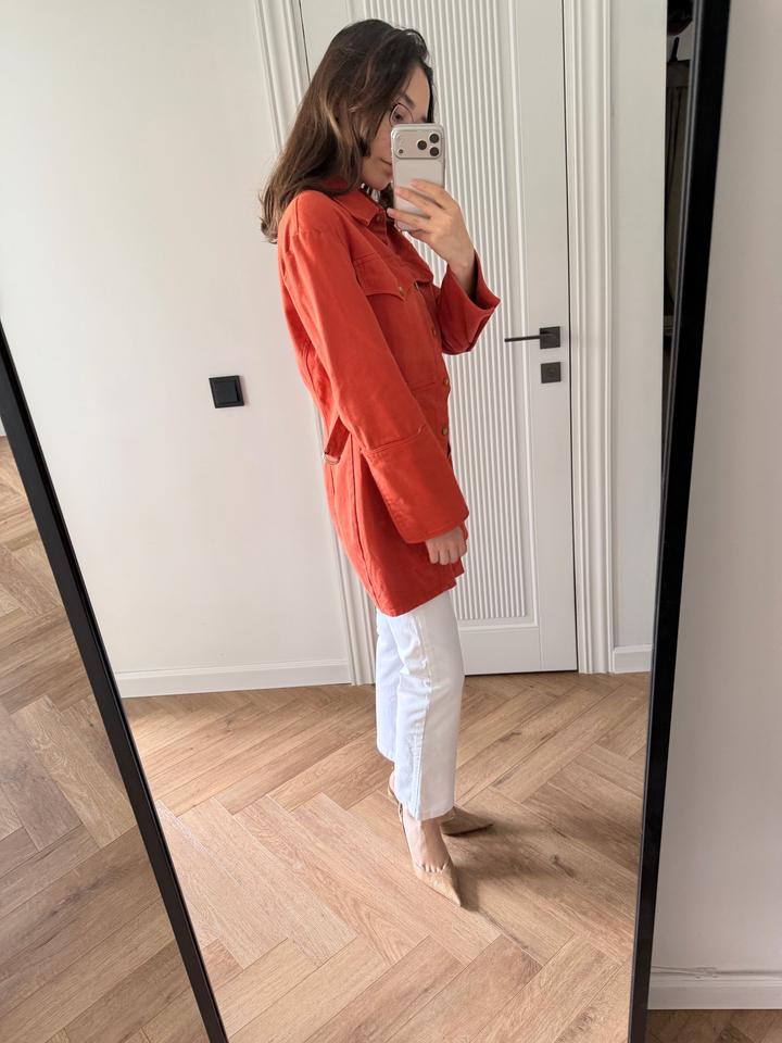 Рубашка в отличном состоянии, носилось толк о пару раз. На рост 1.55-1.64. И на размер Xs или XXS. Можно носить как обычную рубашку или приталить сзади и акцентировать внимание на талии. Качество отличное, все пугивитцв на местах, и цвет ярко и красивый оранжевый. Можно носить как первый слой или поверх маек как второй слой Артикул: 581197