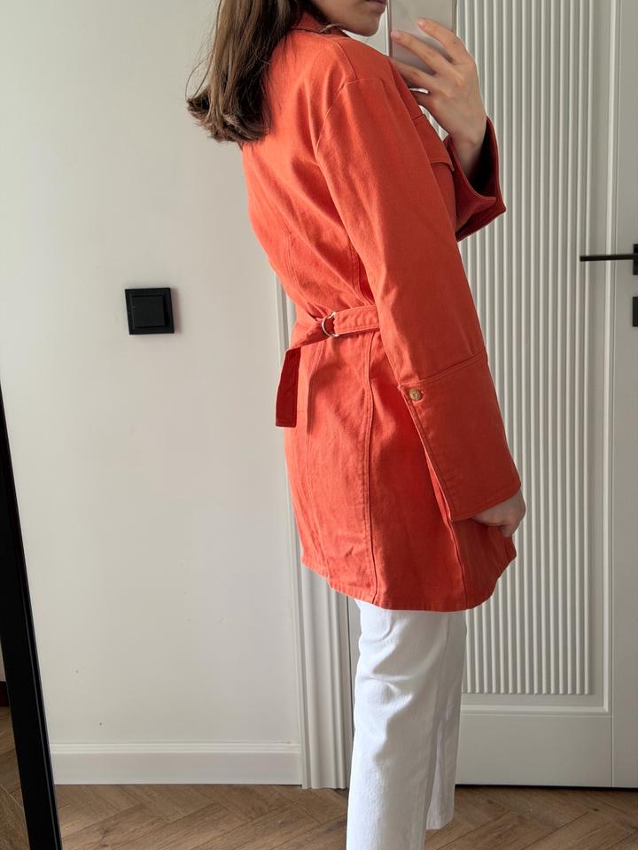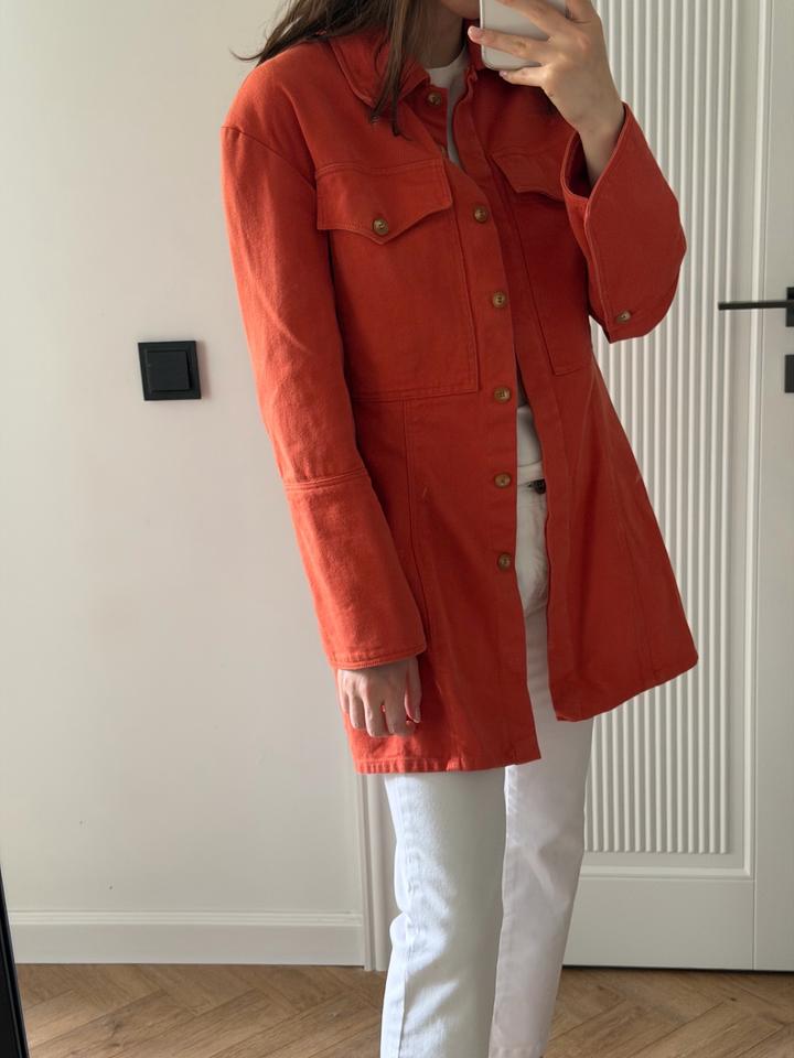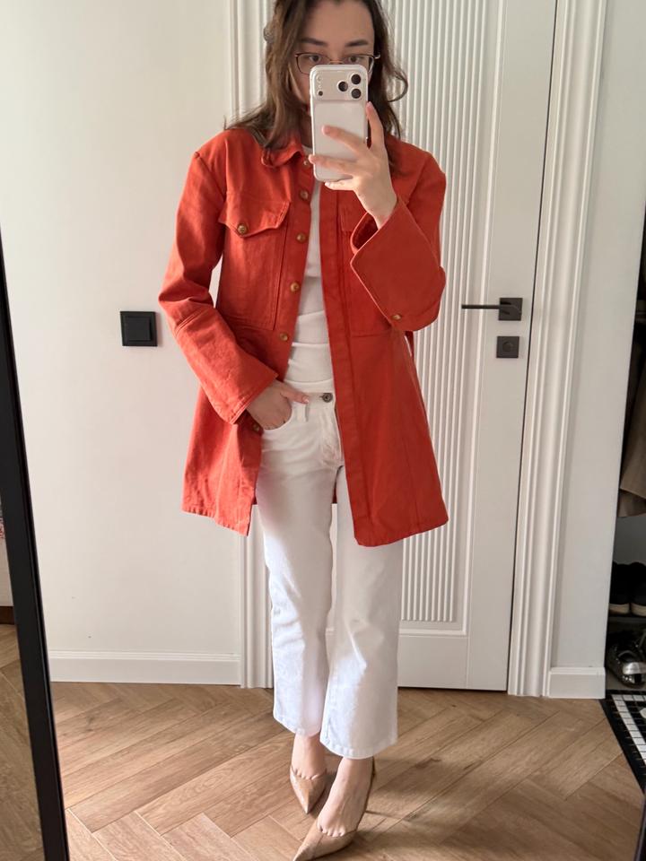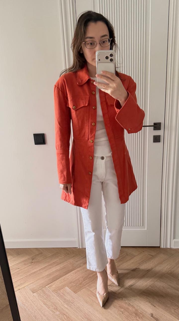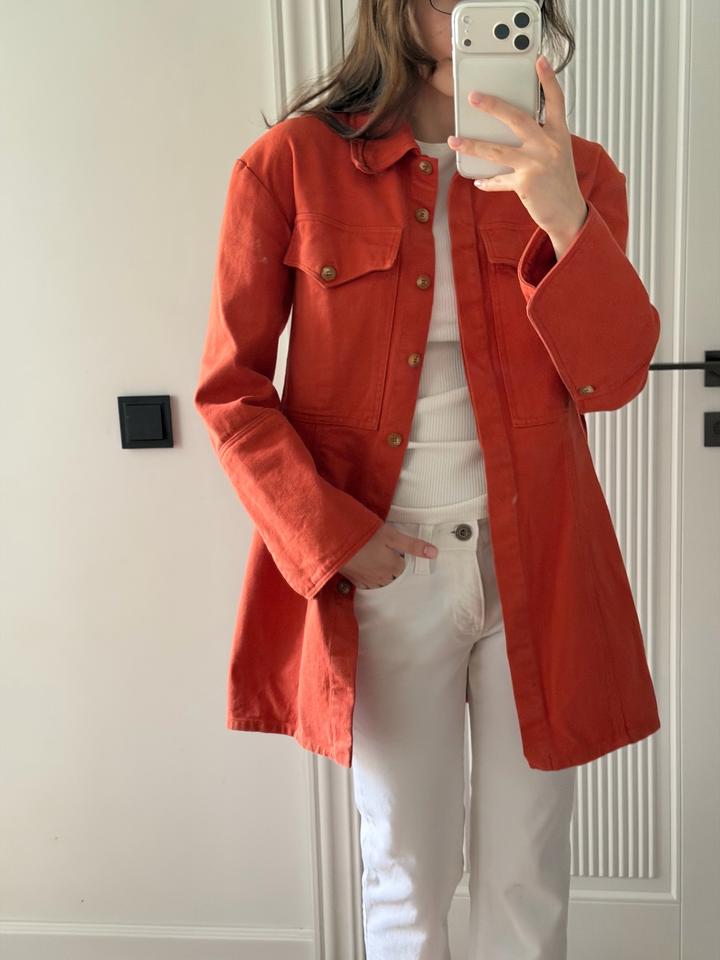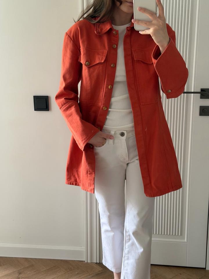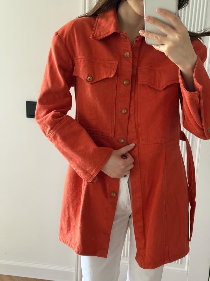 Рубашка в отличном состоянии, носилось толк о пару раз. На рост 1.55-1.64. И на размер Xs или XXS. Можно носить как обычную рубашку или приталить сзади и акцентировать внимание на талии. Качество отличное, все пугивитцв на местах, и цвет ярко и красивый оранжевый. Можно носить как первый слой или поверх маек как второй слой Артикул: 581197