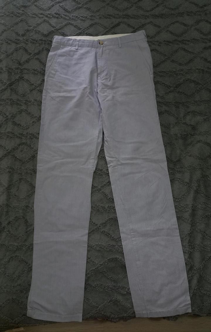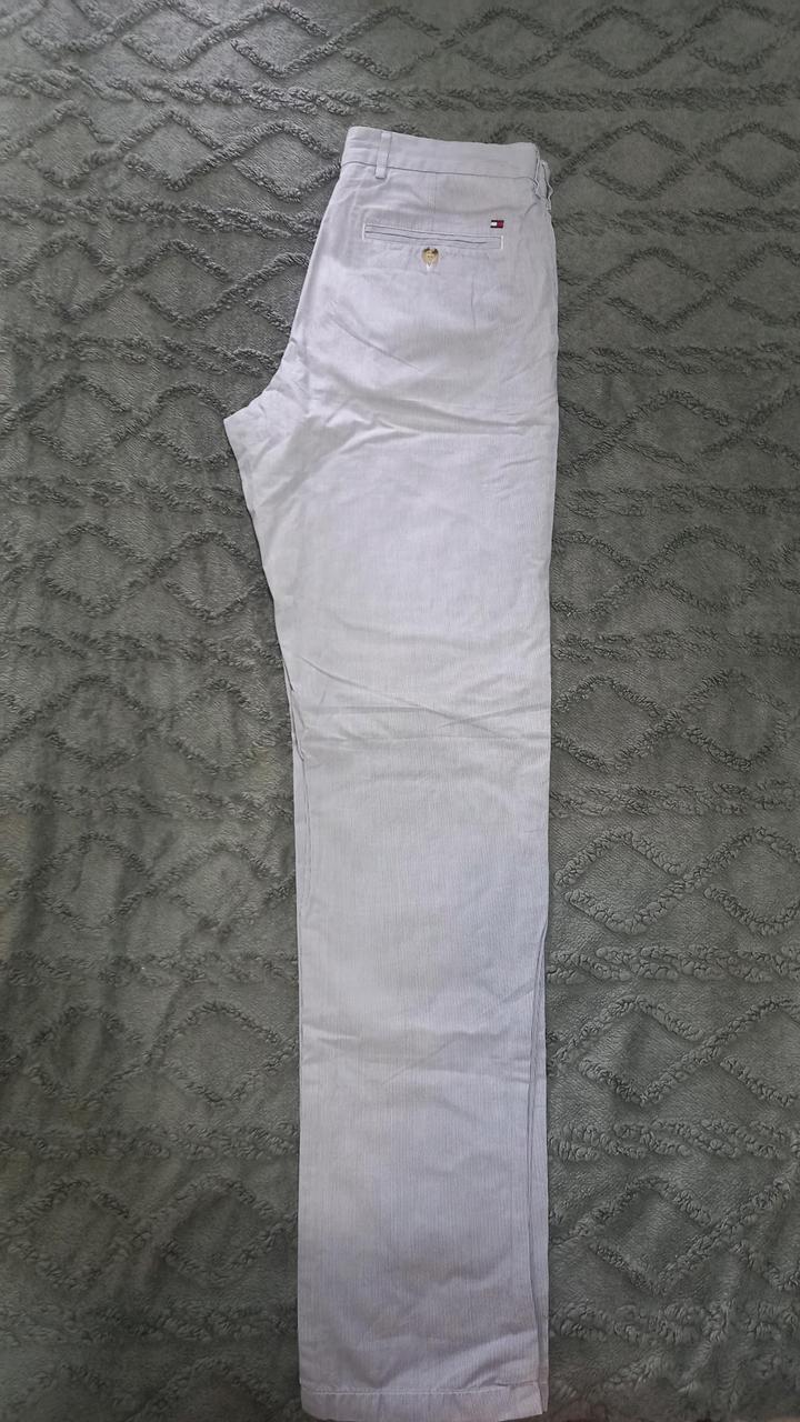 мужские брюки от премиального бренда Tommy Hilfiger. Оригинал (фирменный логотип сзади над карманом). Модель выполнена в классическом стиле «сирсакер» (seersucker) в мелкую бело-голубую полоску. Это идеальный вариант для теплой погоды и лета: ткань очень легкая, дышащая и приятная к телу. Брюки отлично держат форму и смотрятся очень эстетично. Крой классический, слегка зауженный, что позволяет сочетать их как с белыми кедами и футболкой, так и с лоферами или легкой рубашкой. Артикул: 581228