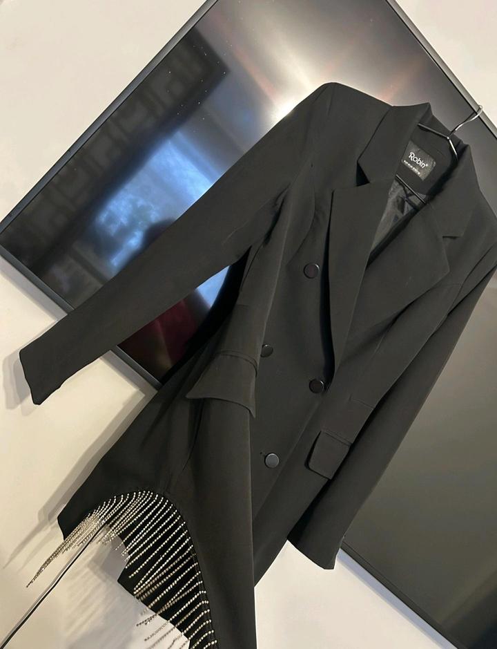 Платье пиджак с вырезом с боку,стразы на боку цвет черный производство Турция Robin размер 42-46 в идельном состояний.Цена 12 тысяч Артикул: 581271