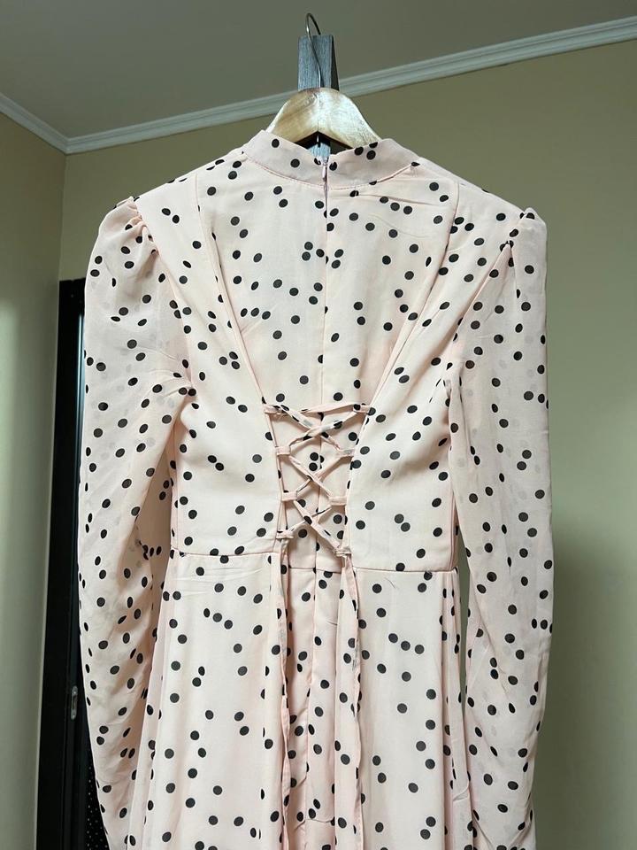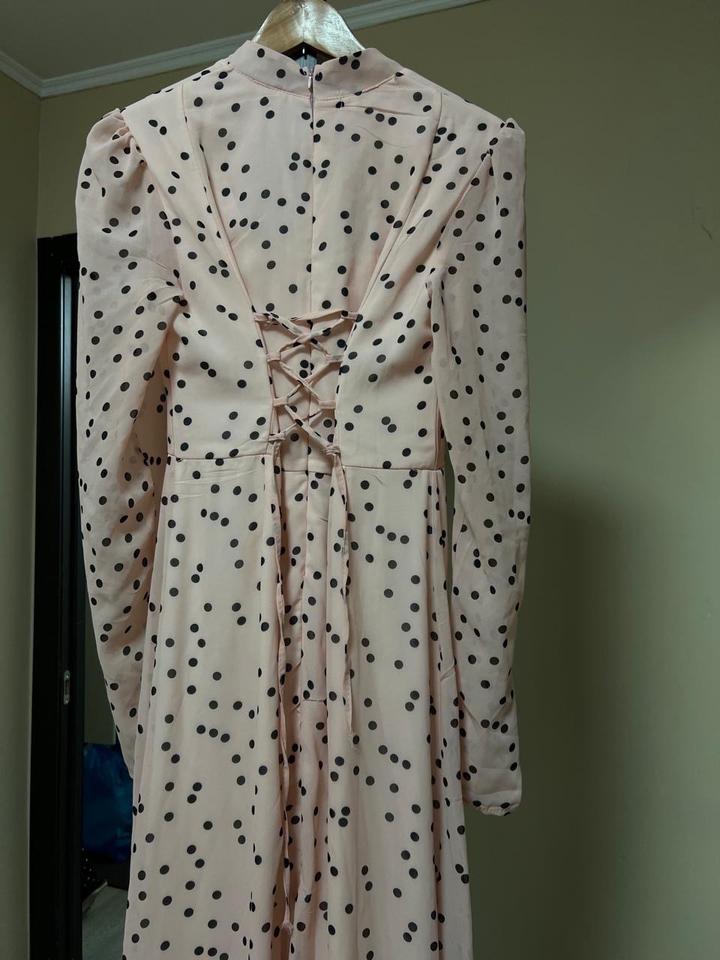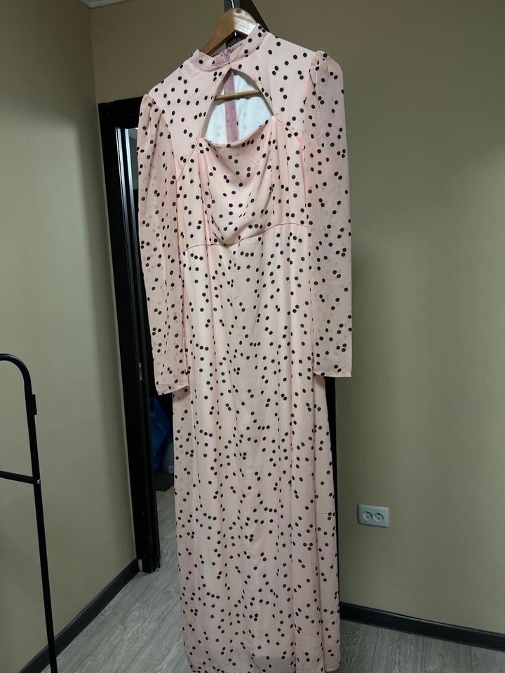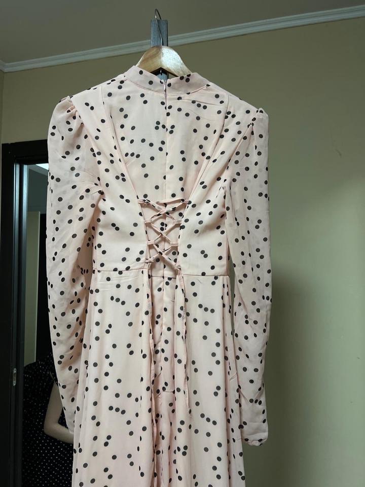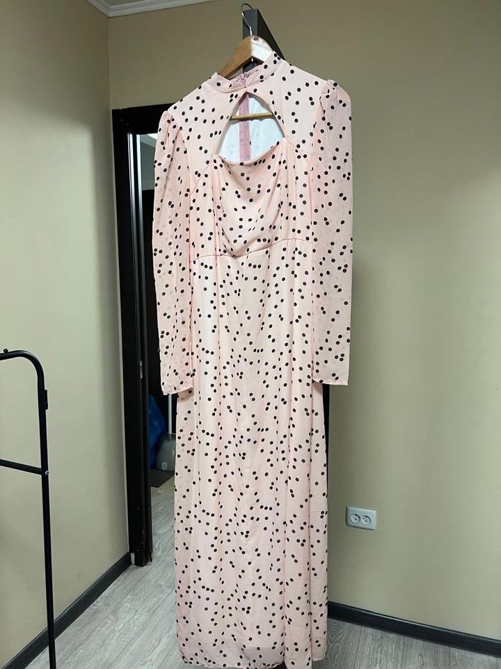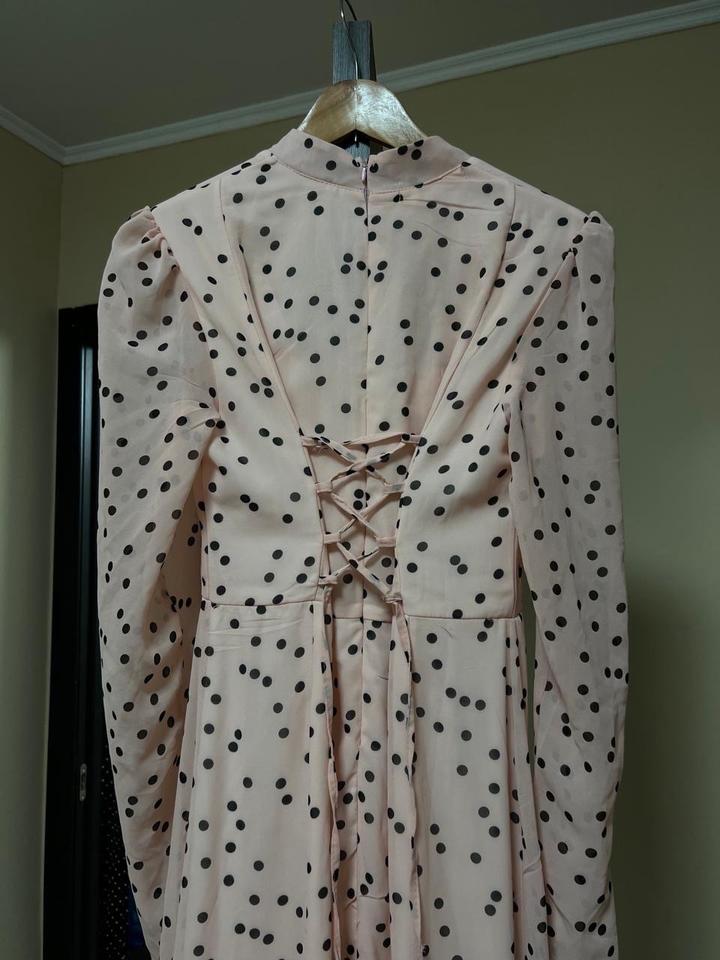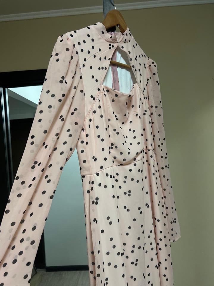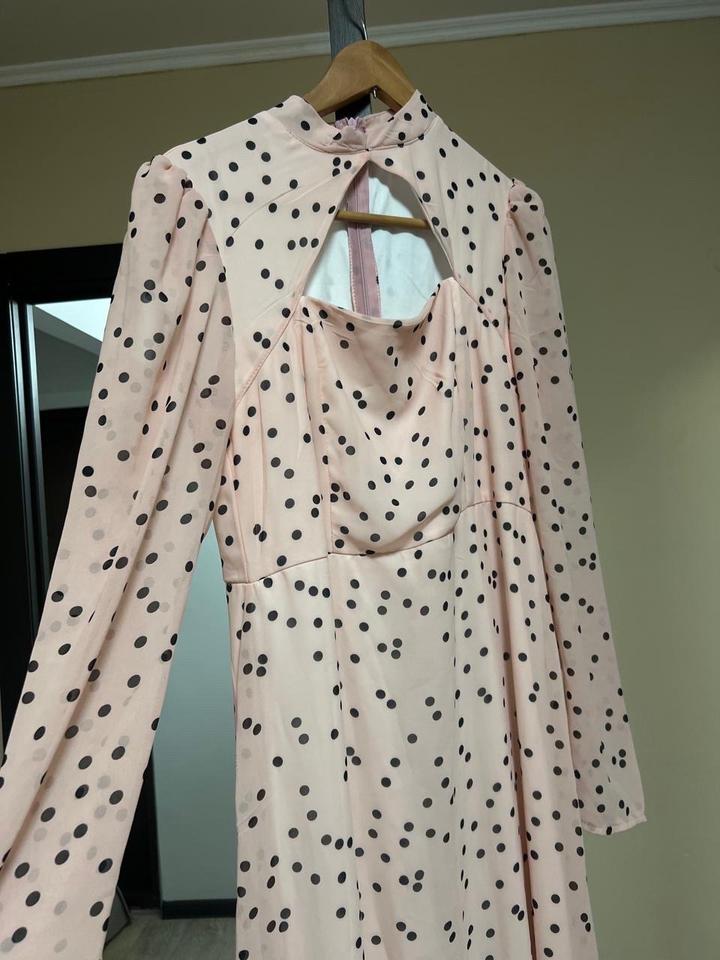 Нежное красивое платье на весну на лето Розовое с черными горошками Артикул: 581272