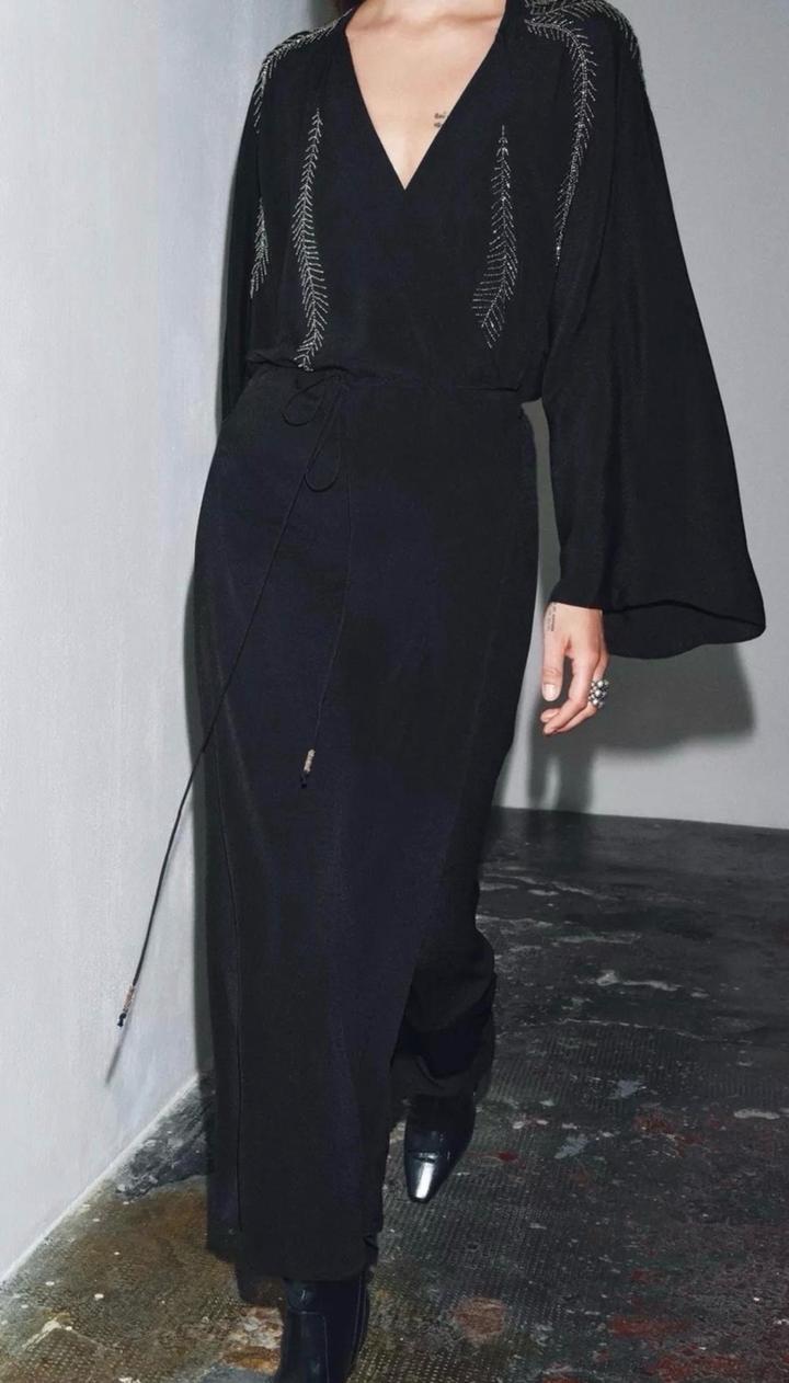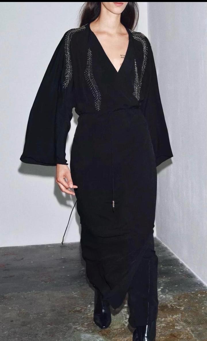 Новое платье ZARA 🖤 можно носить как платье, можно носить как накидку поверх любого низа 🖤 ткань вискоза, узоры в виде листьев украшены бисером 🖤 размер L, подойдет от S до XL🖤 Артикул: 581301