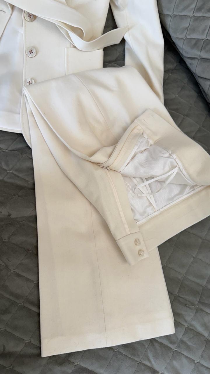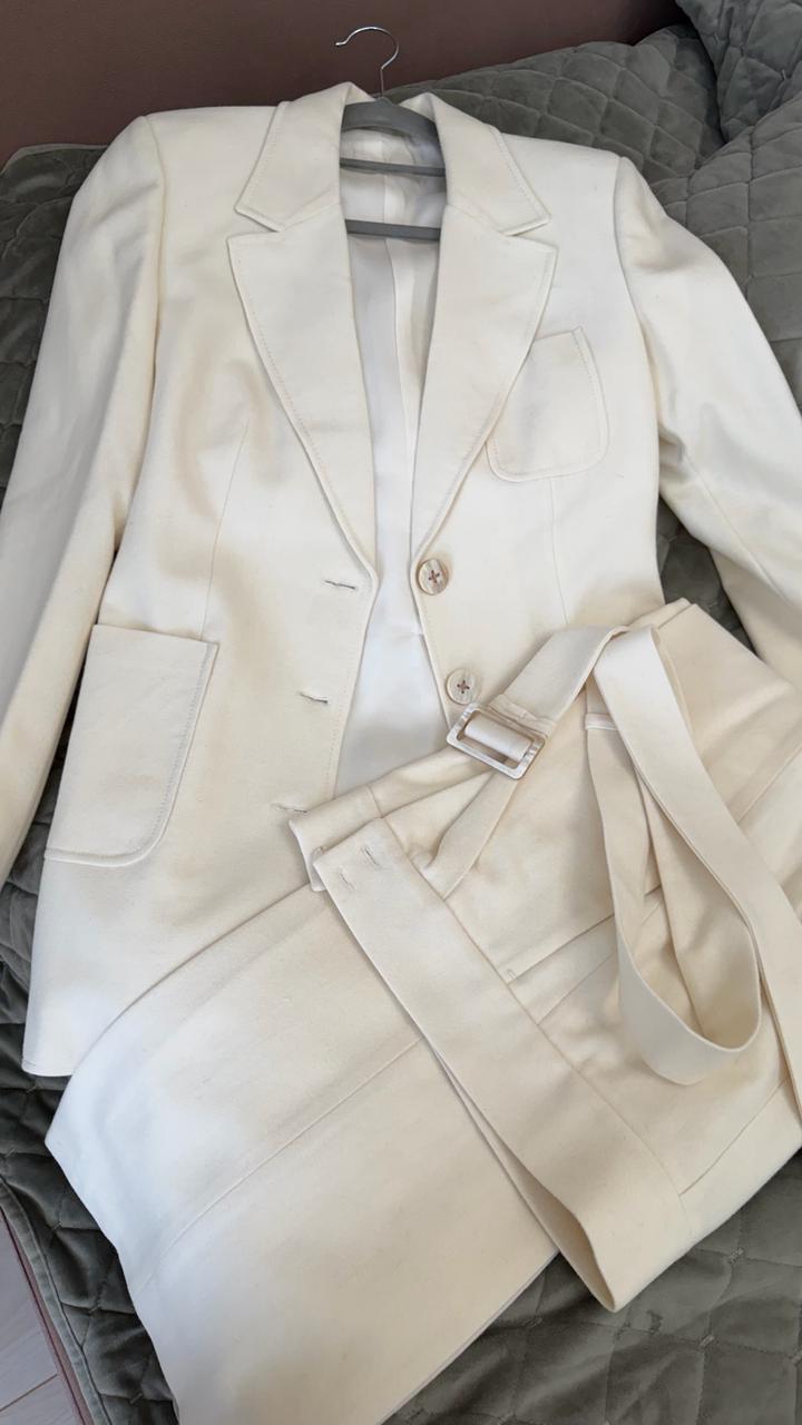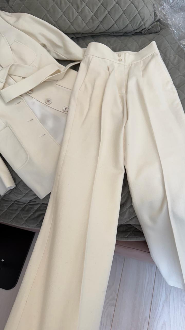 Продаю стильный брючный костюм молочного оттенка, сшитый на заказ в местном ателье. Костюм абсолютно новый — ни разу не надевался. Сшито на заказ в премиальном ателье Даны Дюсембаевы. Размер S Описание: — Пиджак приталенного кроя с поясом — Классические брюки со стрелками — Натуральная шерсть высокого качества — Подклад из шелка — комфорт и премиальный вид — Универсальный благородный цвет — Безупречный пошив и аккуратные детали Идеально подойдет для работы, деловых встреч или стильных выходов 🤍 Артикул: 581330