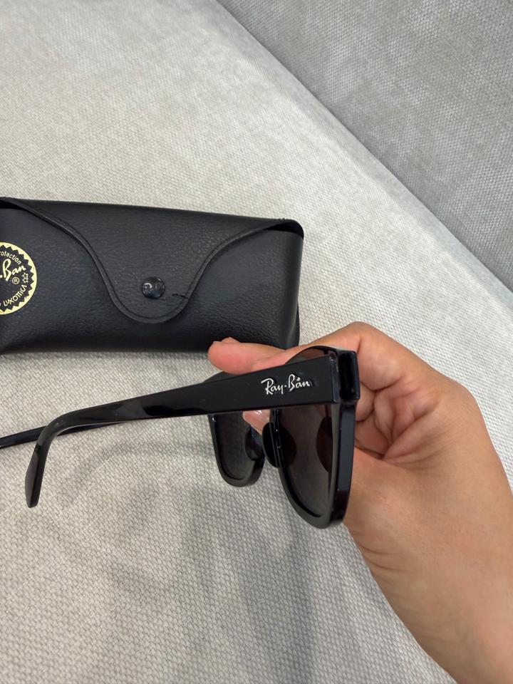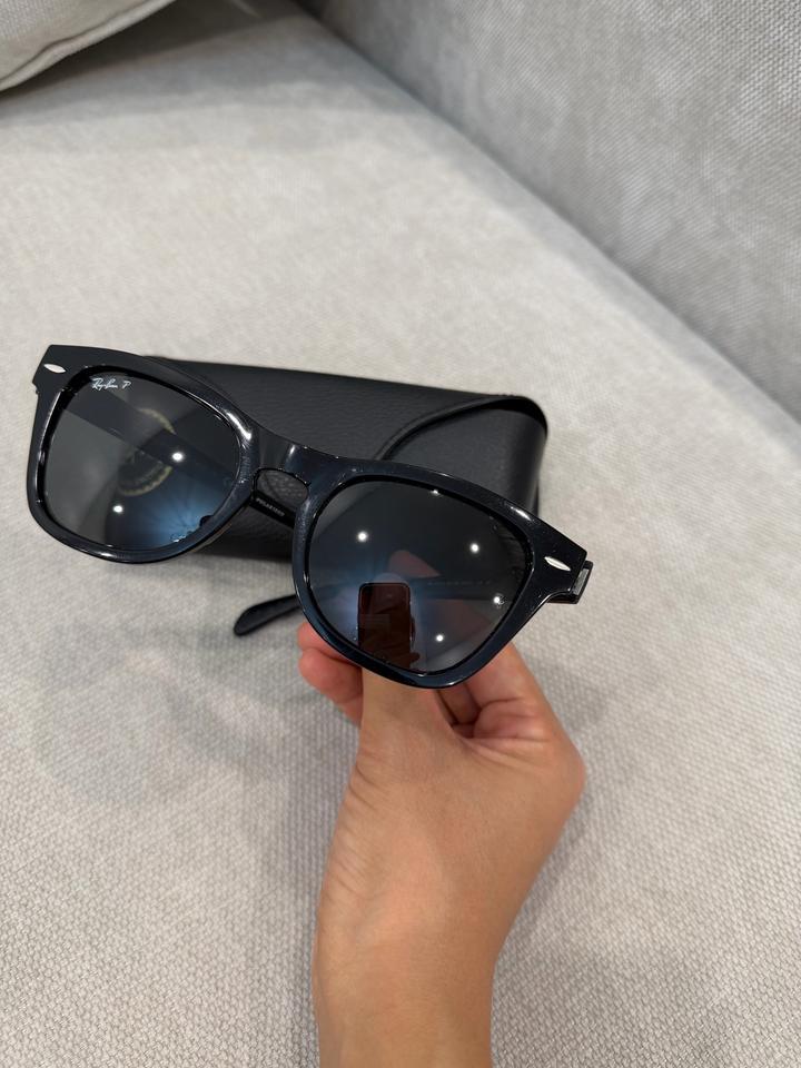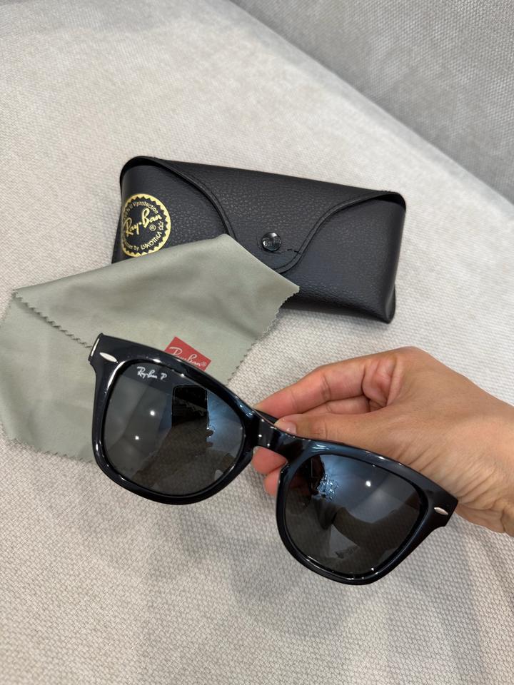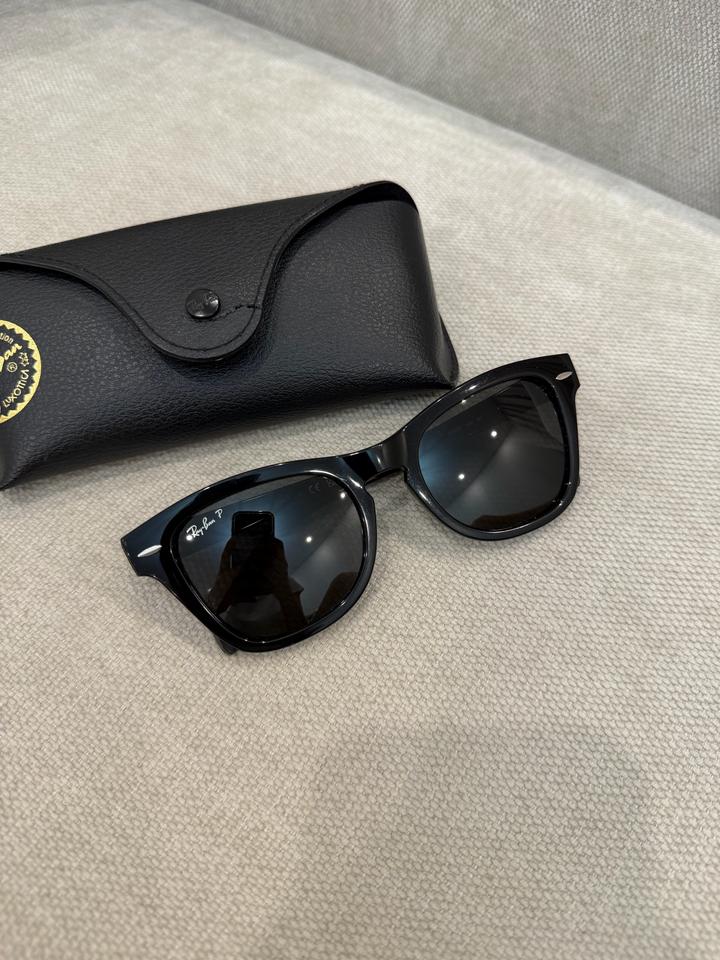 Стильные фирменные очки Ray-Ban в классической чёрной оправе. Линзы с хорошим затемнением (поларойд). В комплекте оригинальный чехол и салфетка. В хорошем состоянии. Артикул: 581350