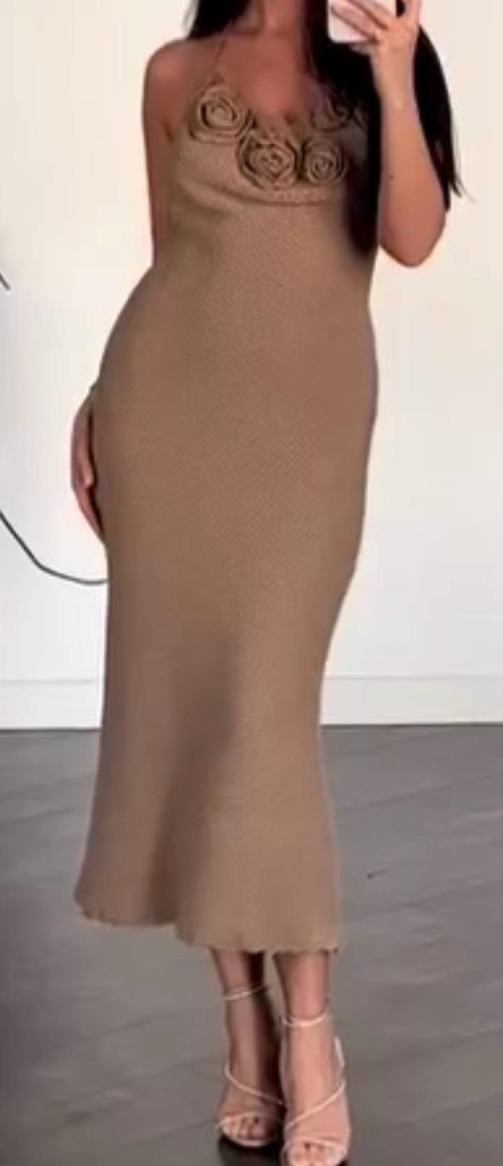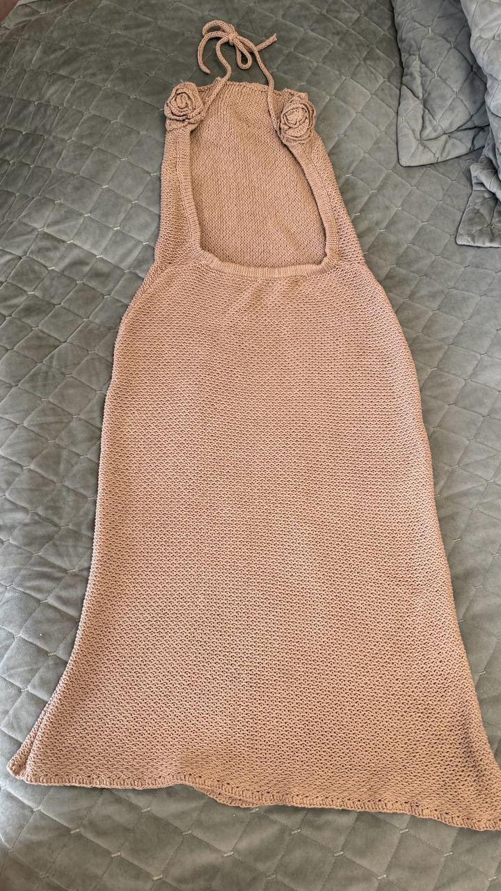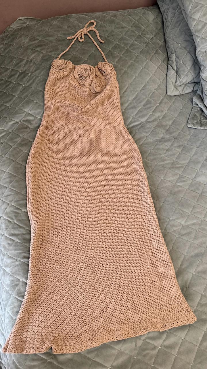 Продаю эффектное вязаное платье в теплом бежево-карамельном оттенке. Выполнено на заказ в премиальном ателье Даны Дюсембаевой. Платье абсолютно новое — ни разу не надевалось. Описание: — Размер: S — Приталенный силуэт, красиво подчеркивает фигуру — Открытая спина с завязками на шее — Декор в виде вязаных роз на груди — Мягкий, приятный к телу — Длина миди Идеальный вариант для отпуска, свиданий, летних вечеринок или фотосессий 🤎 Артикул: 581378