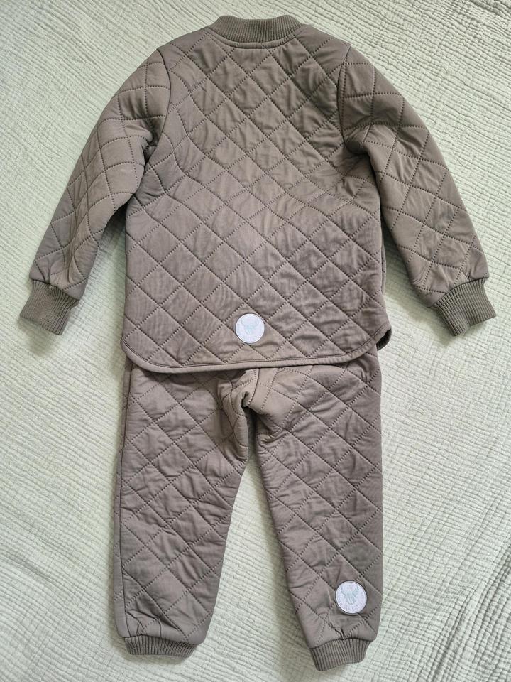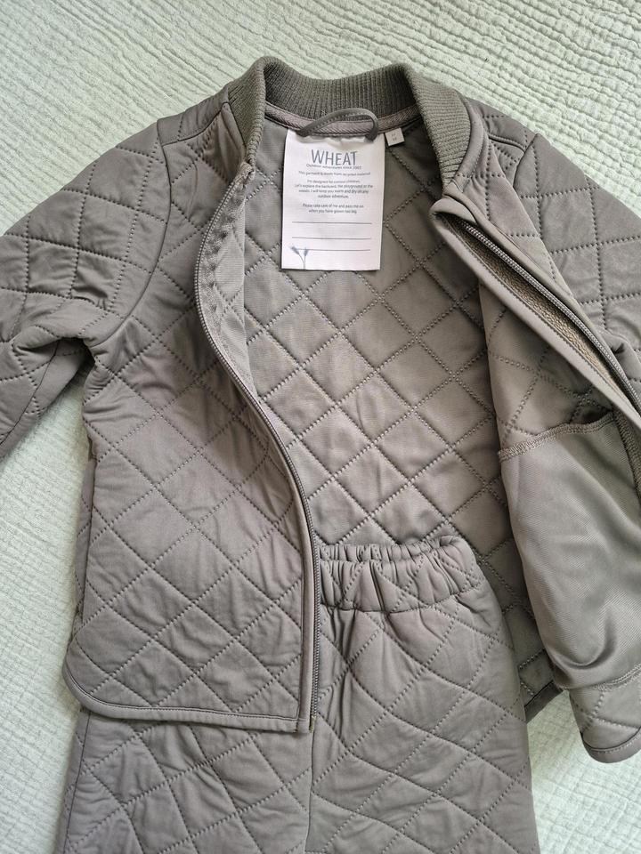 Термокомплект от датского бренда Wheat – удобный костюм на каждый день, мягкий и легкий материал комфортный для движений и игр. Хорошо подходит для прохладных летних дней и межсезонья, когда ребенку нужна более легкая верхняя одежда. Бомбер - маркировка на 3 года, штаны на 2 года, носить можно примерно с 2 до 4х лет. Состояние отличное. Артикул: 581384