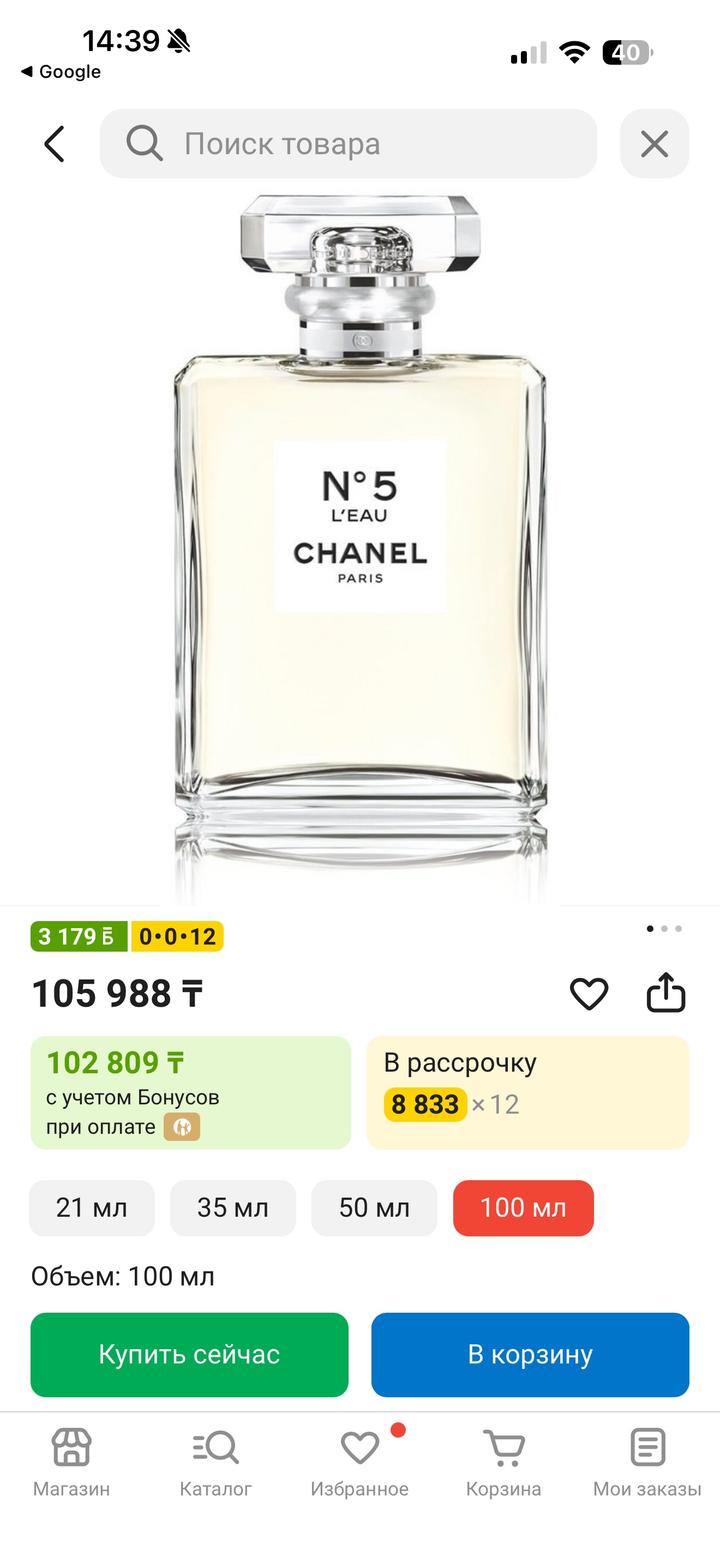 CHANEL №5 L'Eau туалетная вода EDT 100 мл, для женщин Артикул: 581401