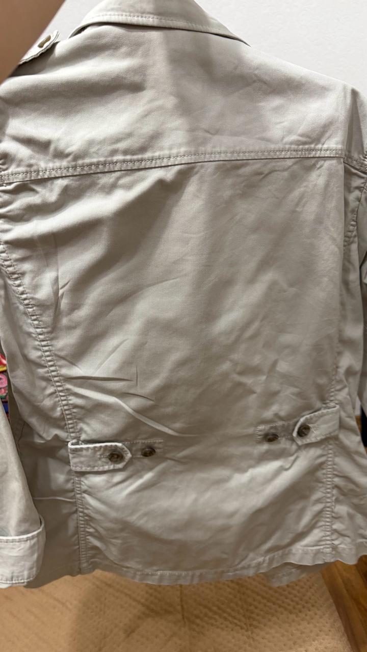 Тренч серого цвета ,на лето и на теплую весну. Отличного качество. Никаких пятен в отличном состояний . Не надевала вообще, был подарен оказался на размер больше . Артикул: 581404