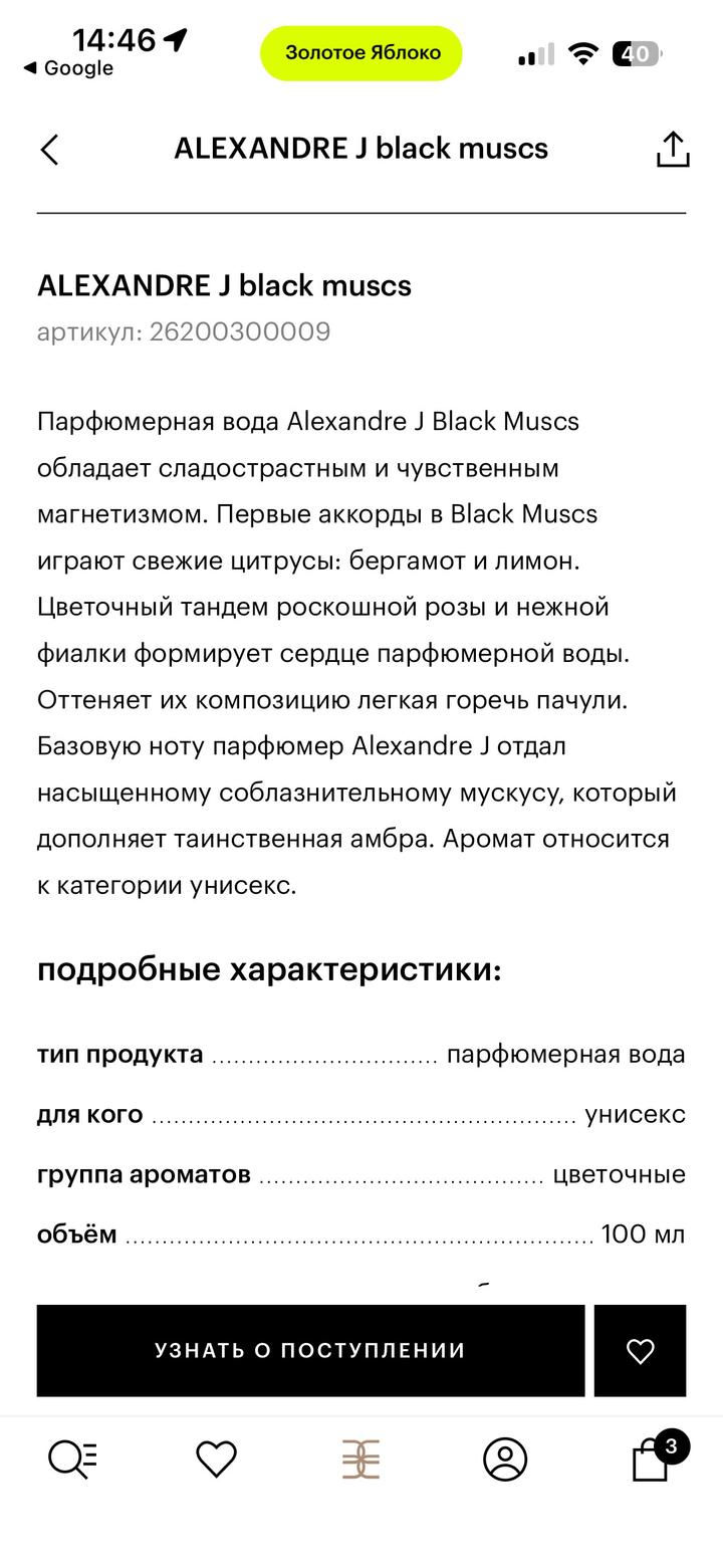 | Бренд | Alexandre J Парфюмерная вода Black Musc |