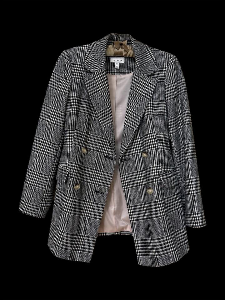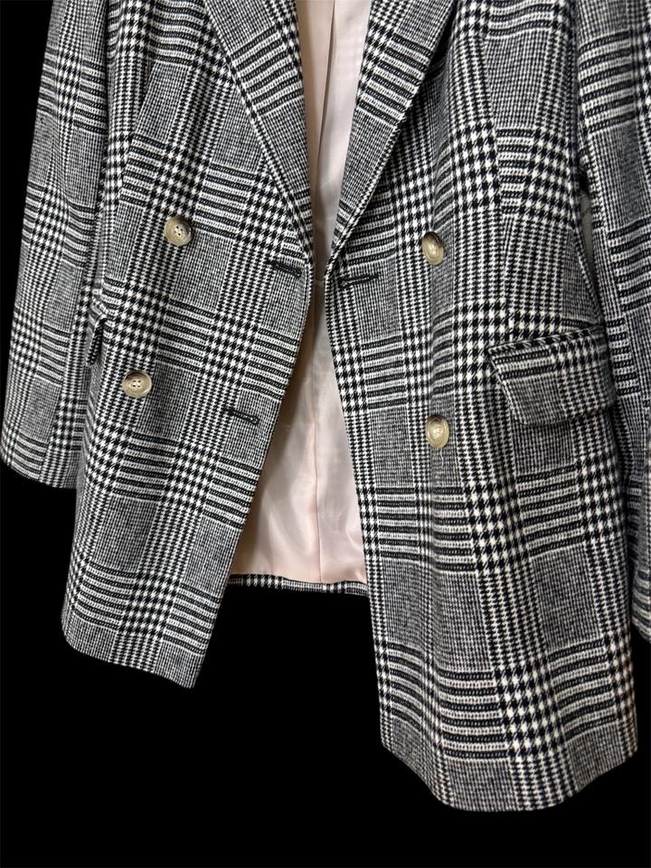 Женский двубортный жакет в клетку Был частью гардероба, соответственно в носке. Носился аккуратно, без дефектов. Артикул: 581438