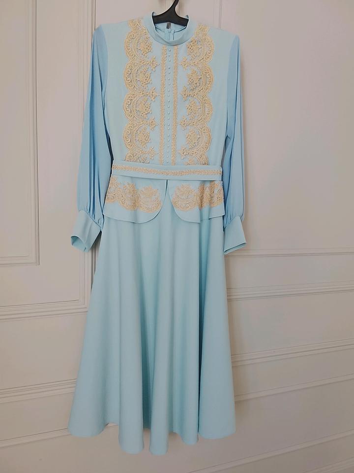 Голубое платье в национальном стиле.S/M