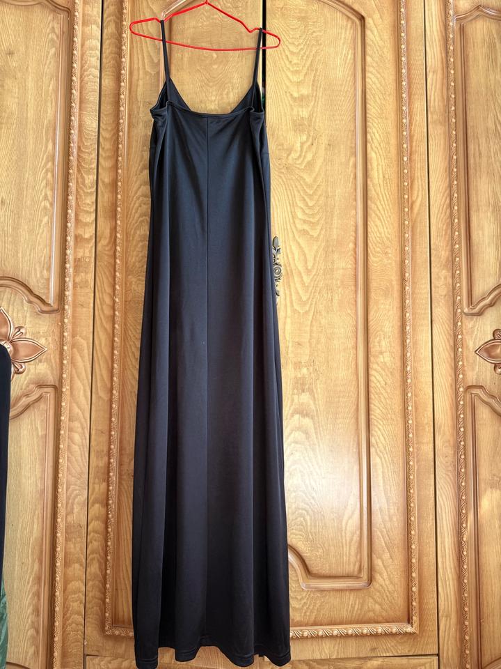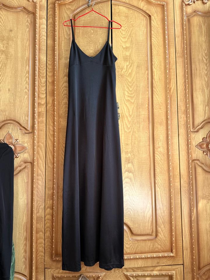 Чёрное базовое платье в длине макси — минимализм, который всегда выглядит дорого. Лёгкий струящийся силуэт, тонкие бретели и аккуратный вырез подчёркивают фигуру без лишних деталей. Без разрезов — идеальный вариант для повседневных образов и вечера. Размер S (подойдёт и на M за счёт посадки). Универсальная вещь, которую легко стилизовать. Артикул: 581453