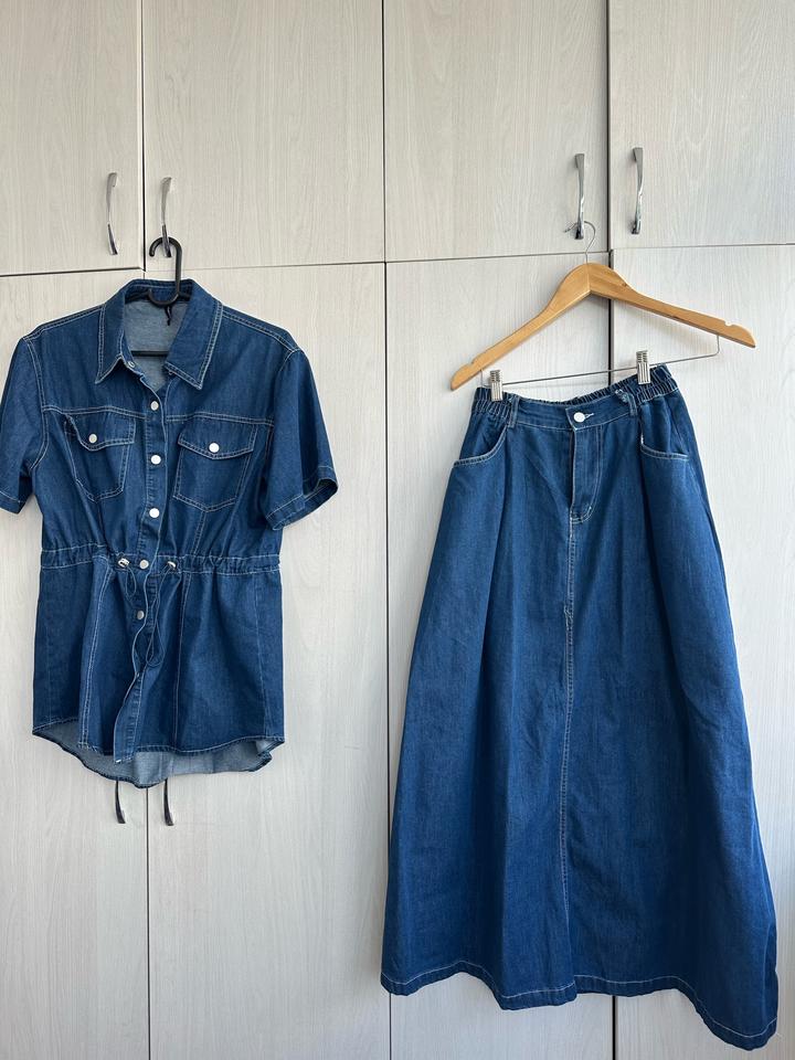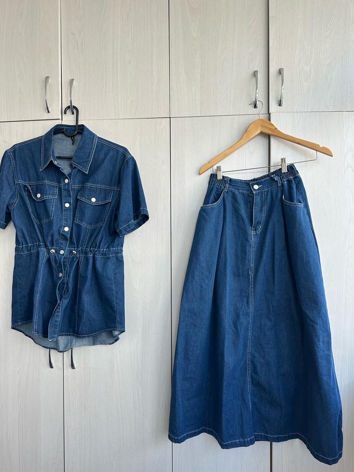 Двойка из джинсы, есть регулировка на резинке, размер стандарт до 48го Артикул: 581514