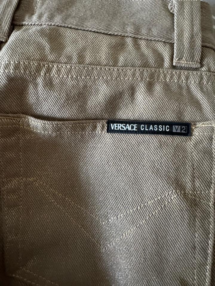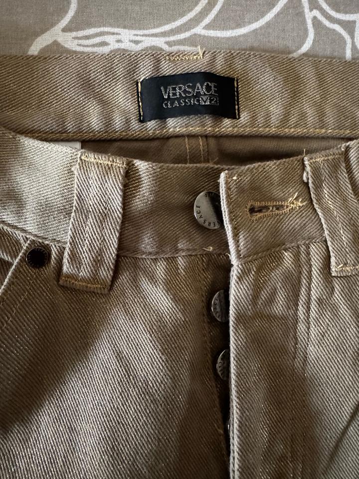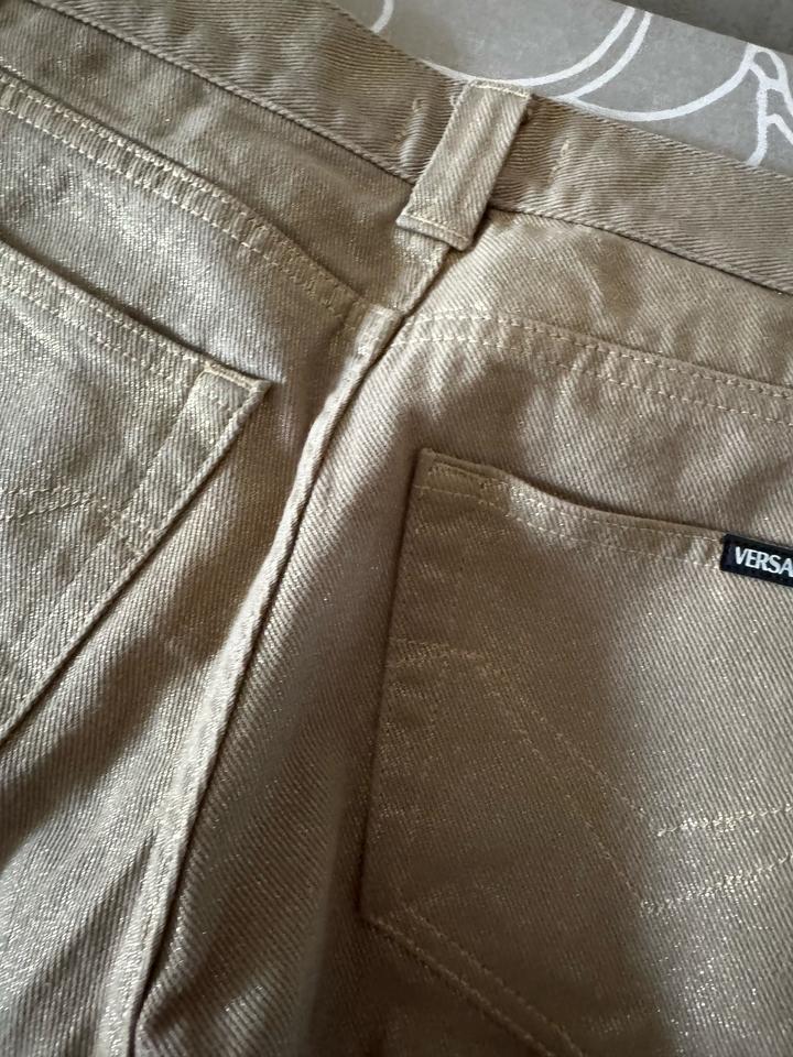 Джинсы Versace, в хорошем состоянии, размер xs, оригинал, бежевые с золотым отливом Артикул: 581525