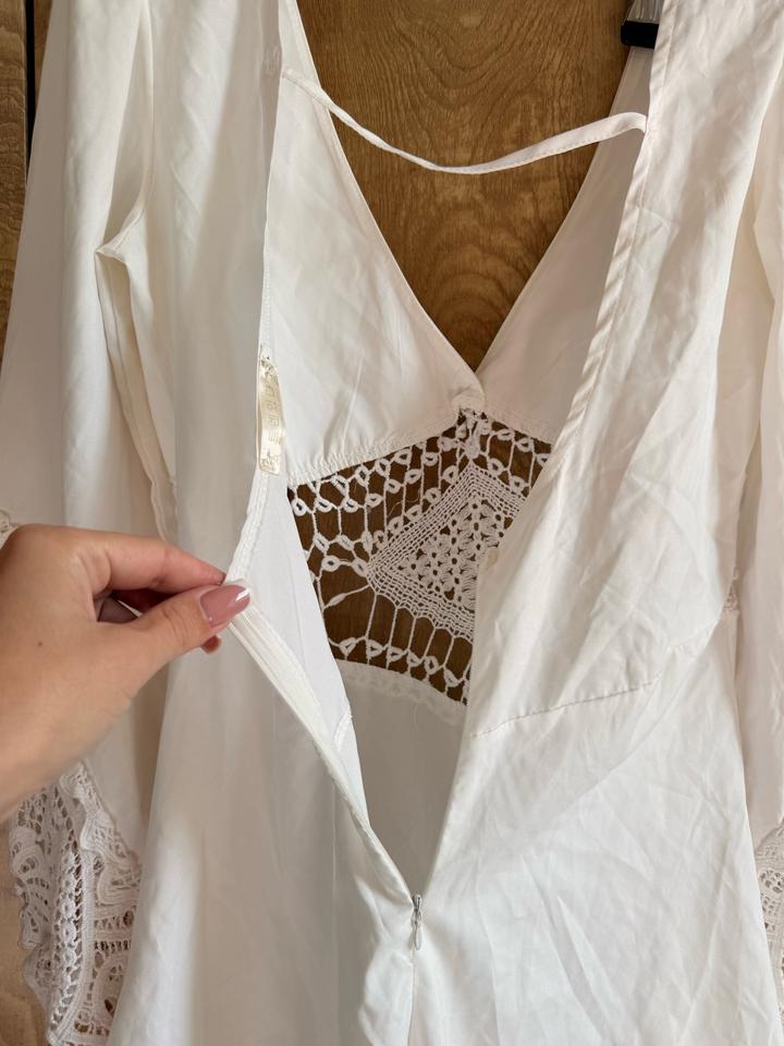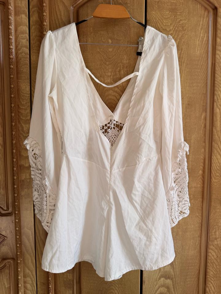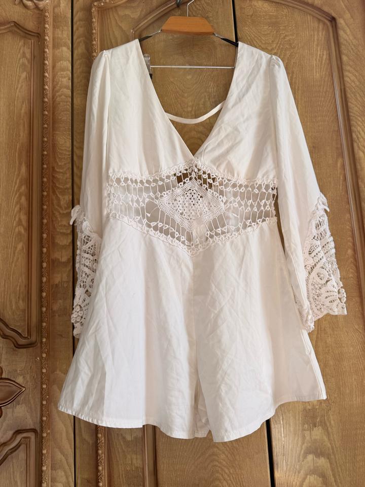 Белый кружевной комбез с эффектом платьяS/M