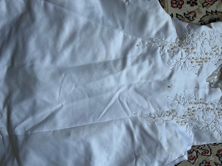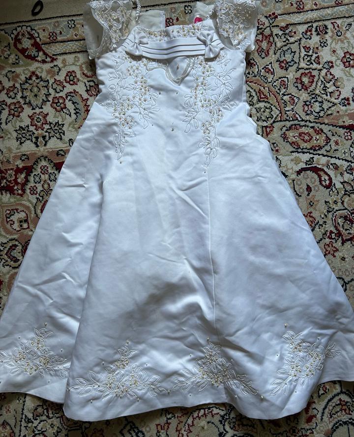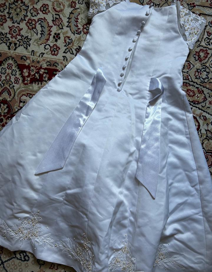 Продам элегантное праздничное платье в отличном состоянии. Идеально подойдет для дня рождения, свадьбы или любого другого важного события! Основные характеристики: • Цвет: Классический белоснежный. • Материал: Плотный, качественный атлас с благородным блеском. Хорошо держит форму. • Декор: Платье богато украшено нежной вышивкой и жемчужными бусинами на корсете, рукавах и по подолу. Артикул: 581587