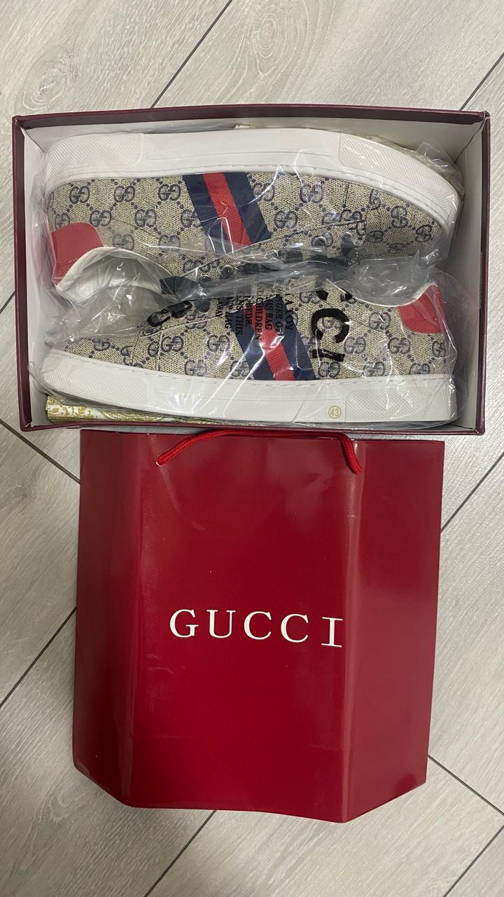 Заказал новые кеды от GUCCI. По размеру не подошли. Размер 43 Продаю в разы дешевле чем в магазинах. Качество отличное! Артикул: 581737