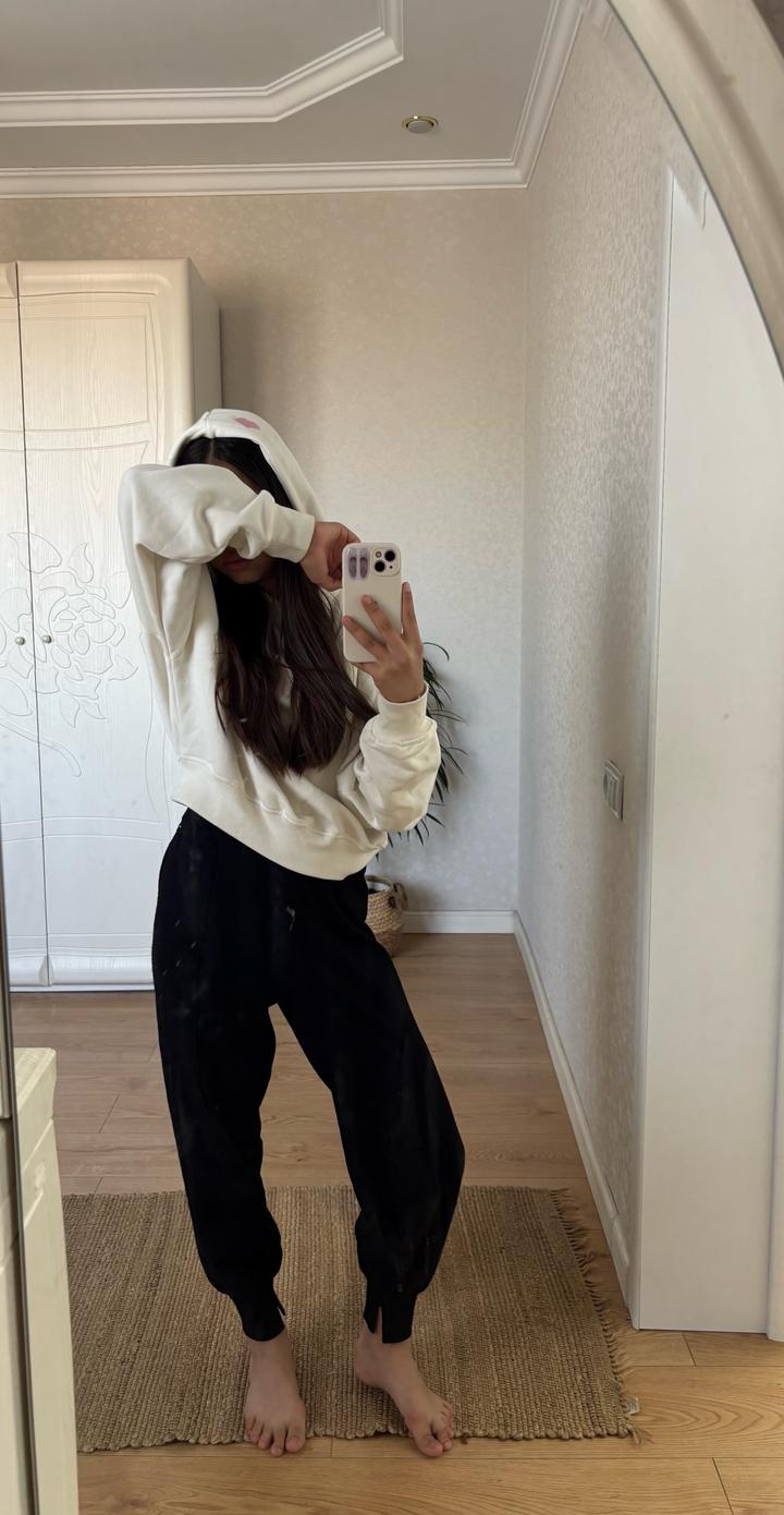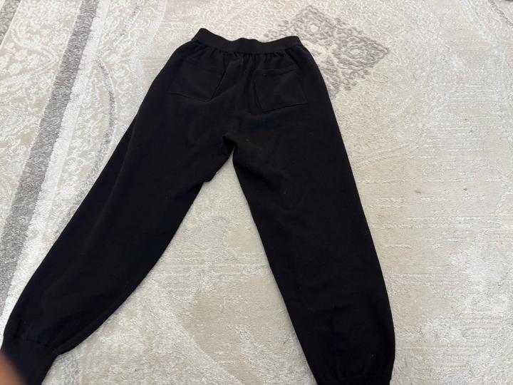 Чёрный цвет — универсальный и практичный * Свободный, слегка зауженный к низу крой * Мягкая, комфортная ткань (похожа на трикотаж) * Высокая или средняя посадка * Низ без сильной резинки — штанины лежат прямо и аккуратно Артикул: 581758
