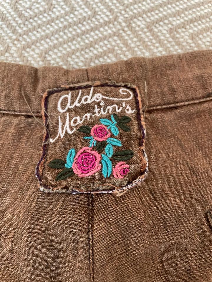 Aldo Martin's - известный испанский бренд из Барселоны с уникальной историей. Мягкий, приятный к телу материал делает брюки незаменимыми на каждый день, естьнеобычная деталь в виде вышитой фирменной этикетки. Размер: 42-44 (сидят комфортно, подчеркивая силуэт). Наличие удобных боковых карманов. • Состояние: Отличное, вещь очень качественная и прослужит еще долго. Артикул: 581815