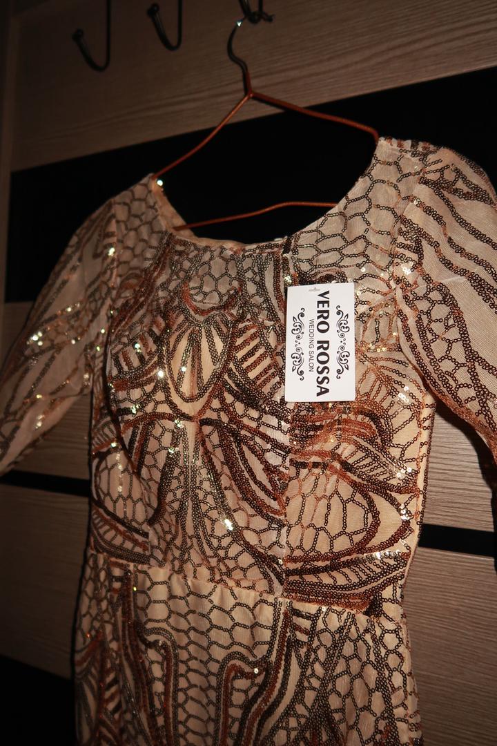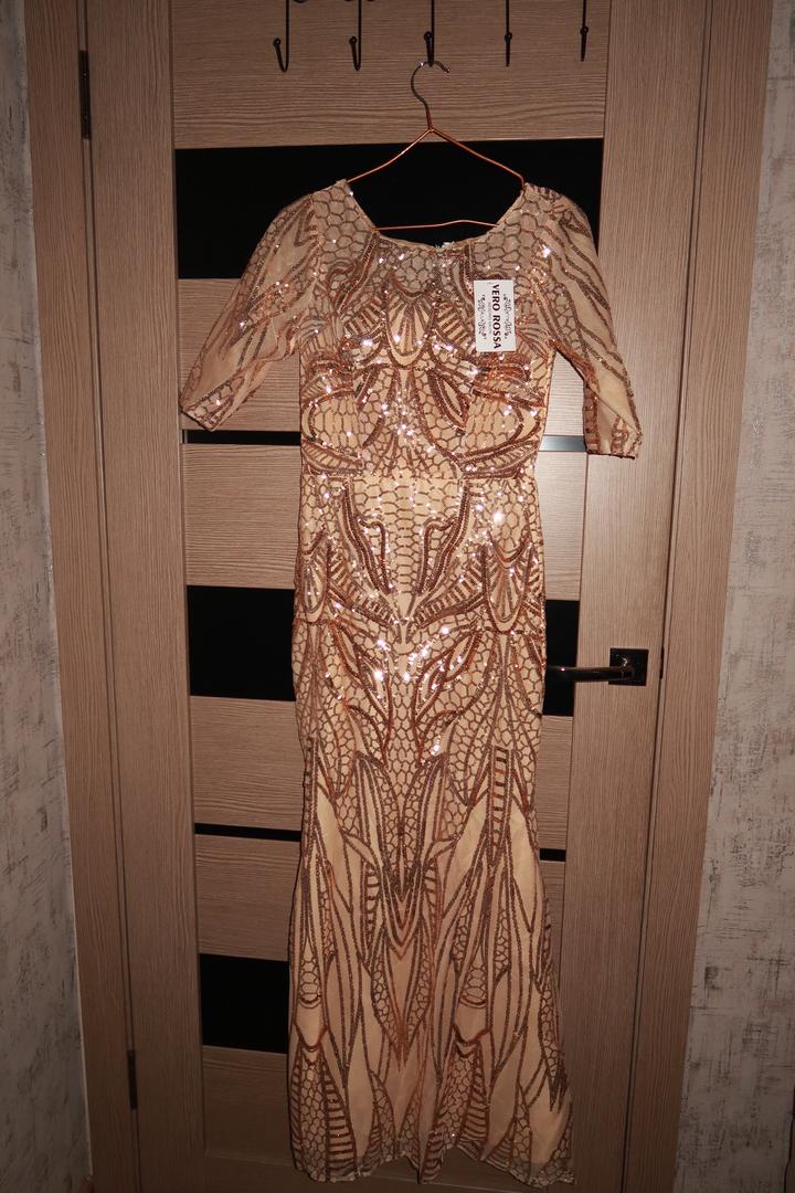 Вечернее золотистое платье от Vero Rosso. Покупали за 40 000 тг, продаю за 27к. Состояние отличное, с биркой. Размер 42 (S) Артикул: 581906