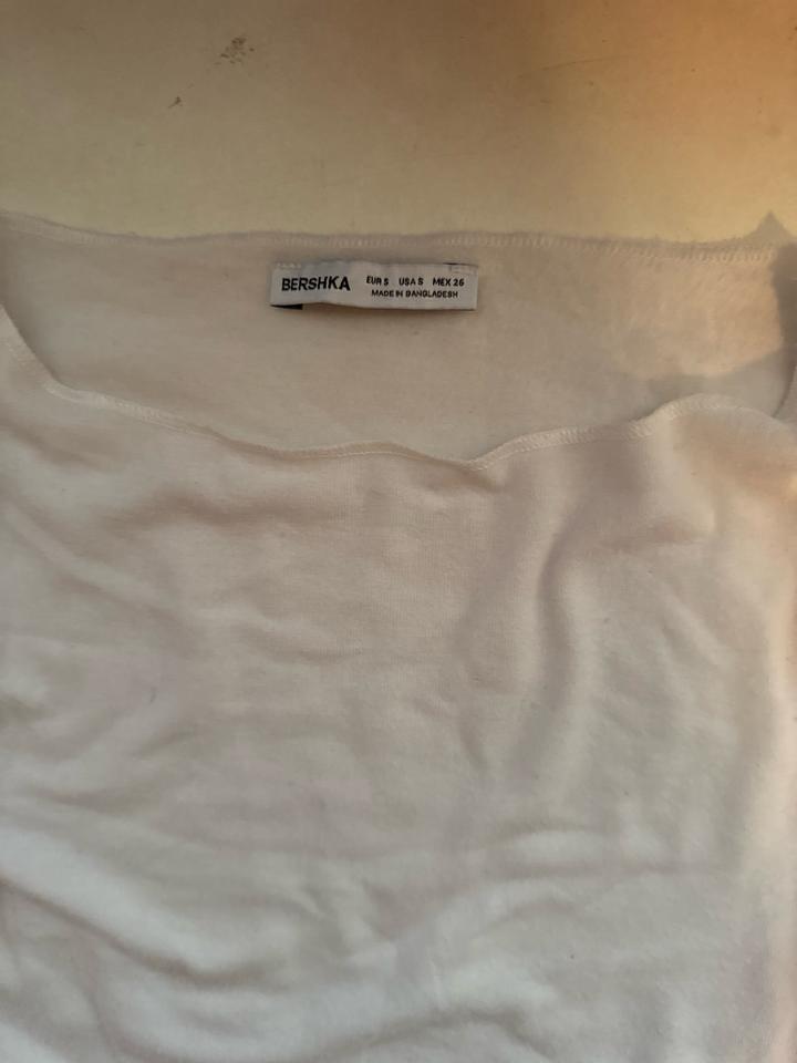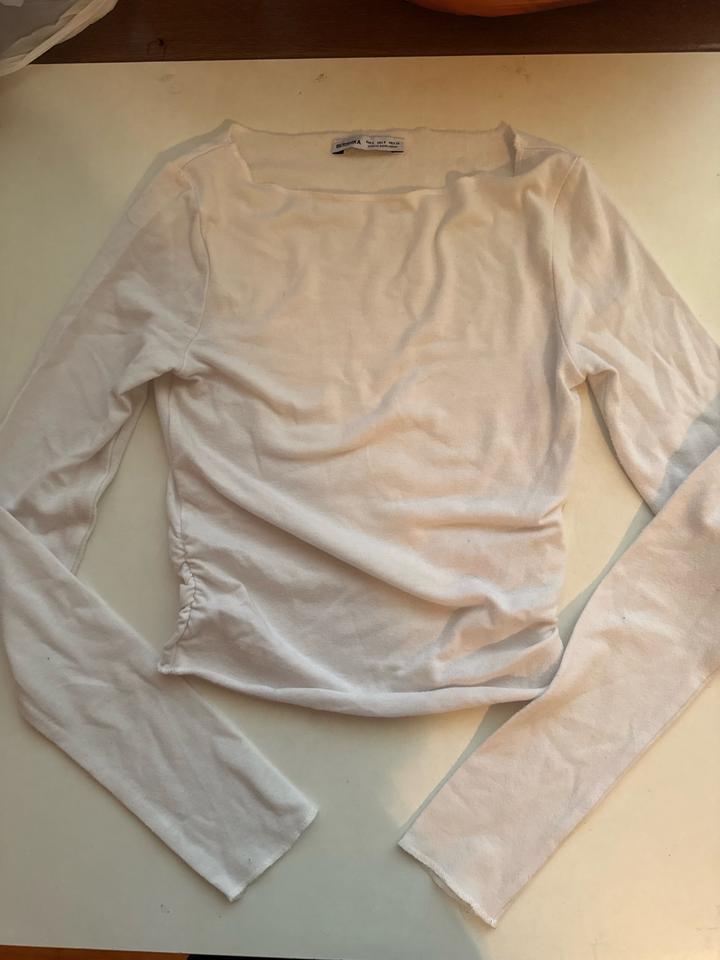 Белый, короткий лонгслив Bershka. Из тонкого, тянущего материала Артикул: 581948